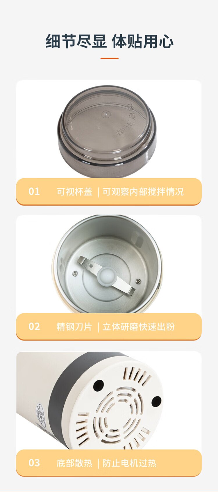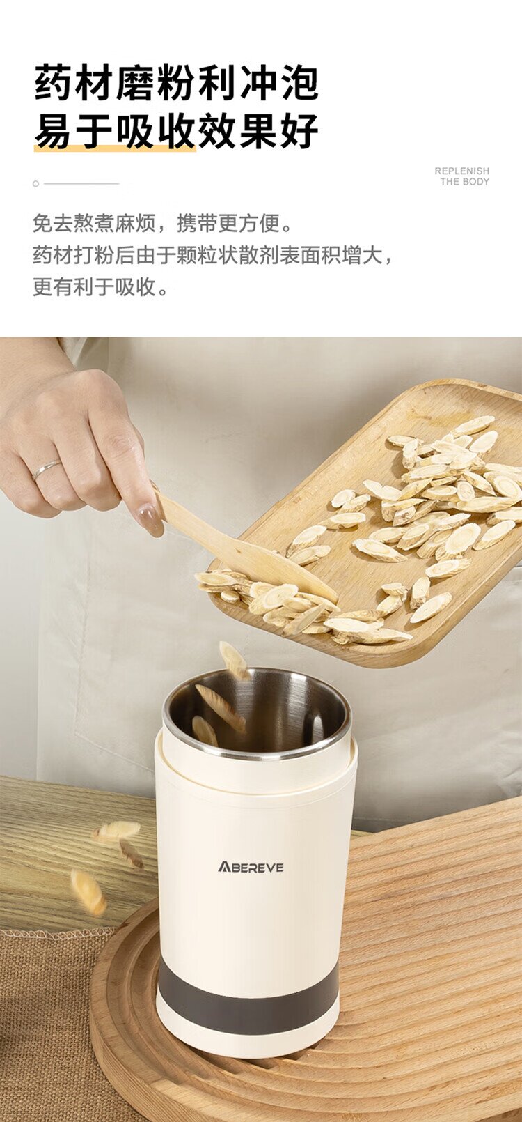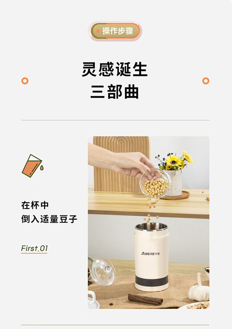 艾贝丽研磨机ABL-YM123(灰白色,外壳PP+不锈钢内胆)