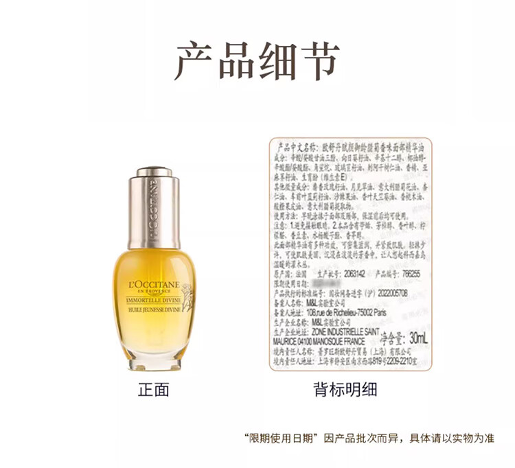 欧舒丹赋颜御龄精华油30ml小金瓶面部精华油紧致保湿礼物送女士护肤品 心选到家