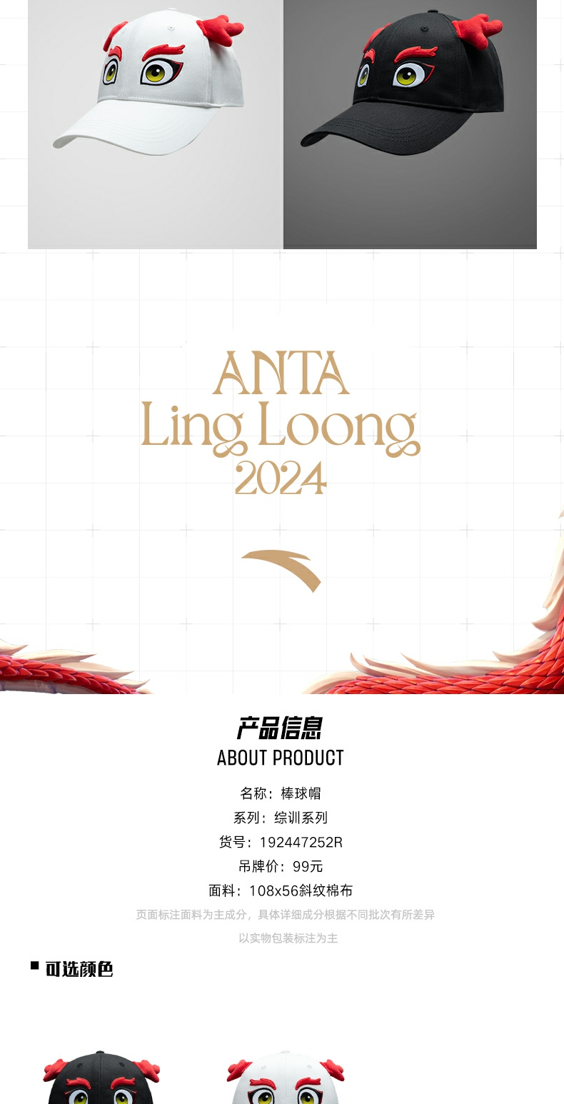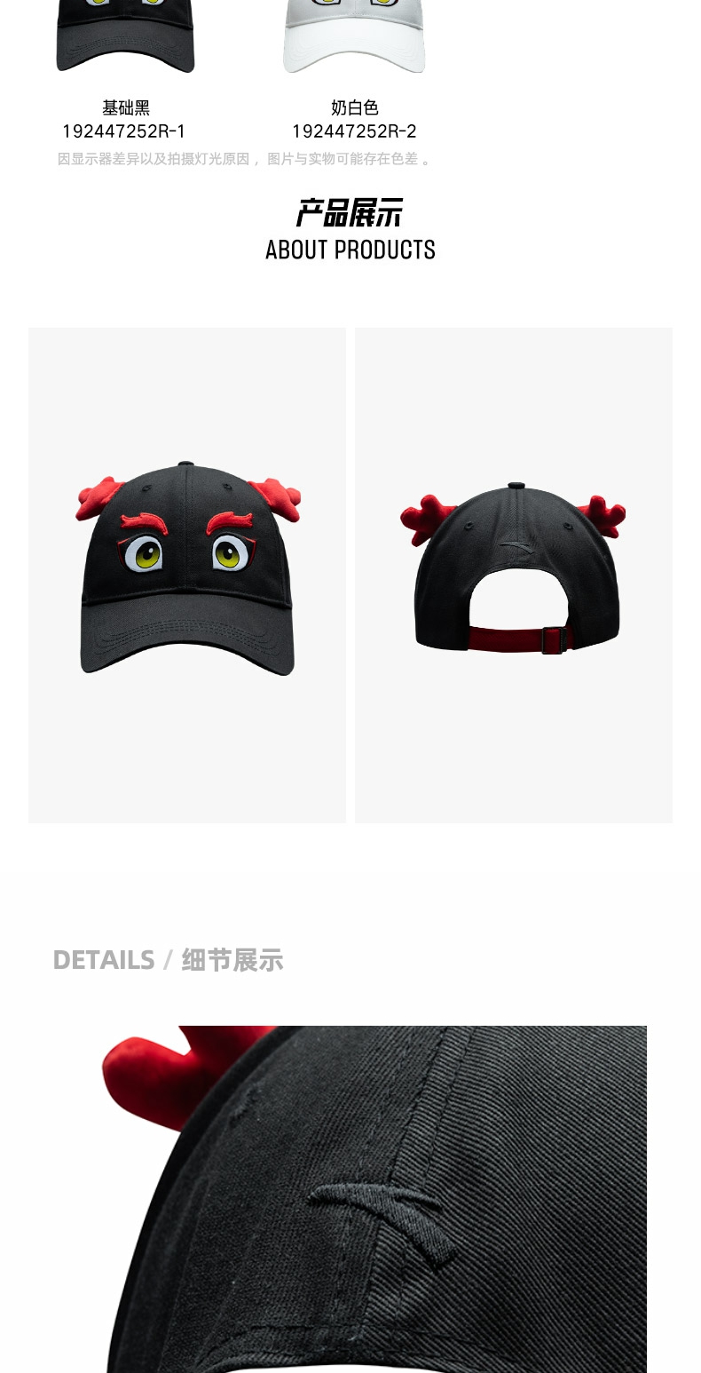 安踏灵龙系列棒球帽休闲百搭遮阳帽透气户外防晒帽时尚运动帽子192447252R