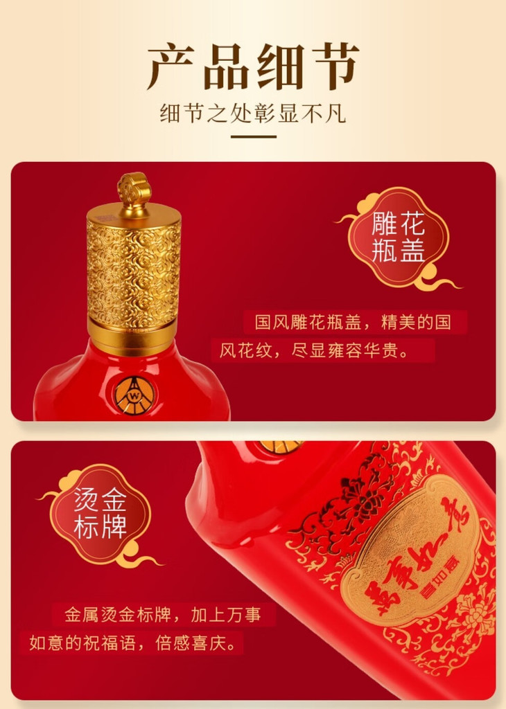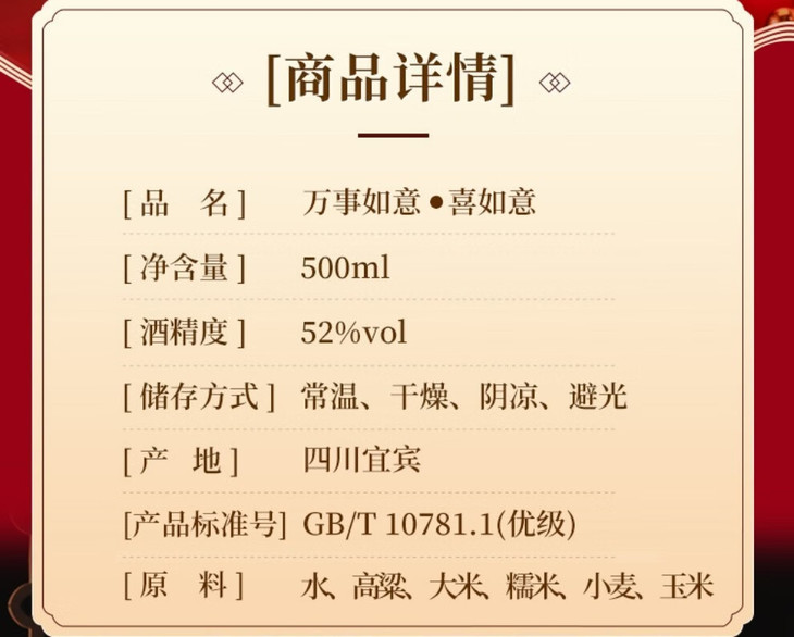 【2022年】五粮液股份出品 万事如意 喜如意 浓香型 52度 500ml x6 整箱