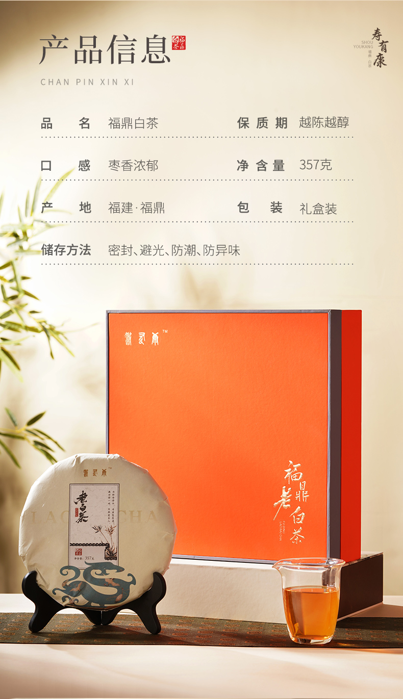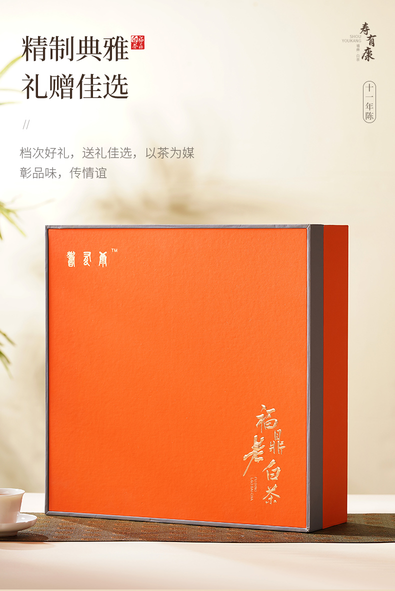 寿有康 福鼎老白茶贡眉礼盒 11年装(爱马仕橙)【实物/卡券】