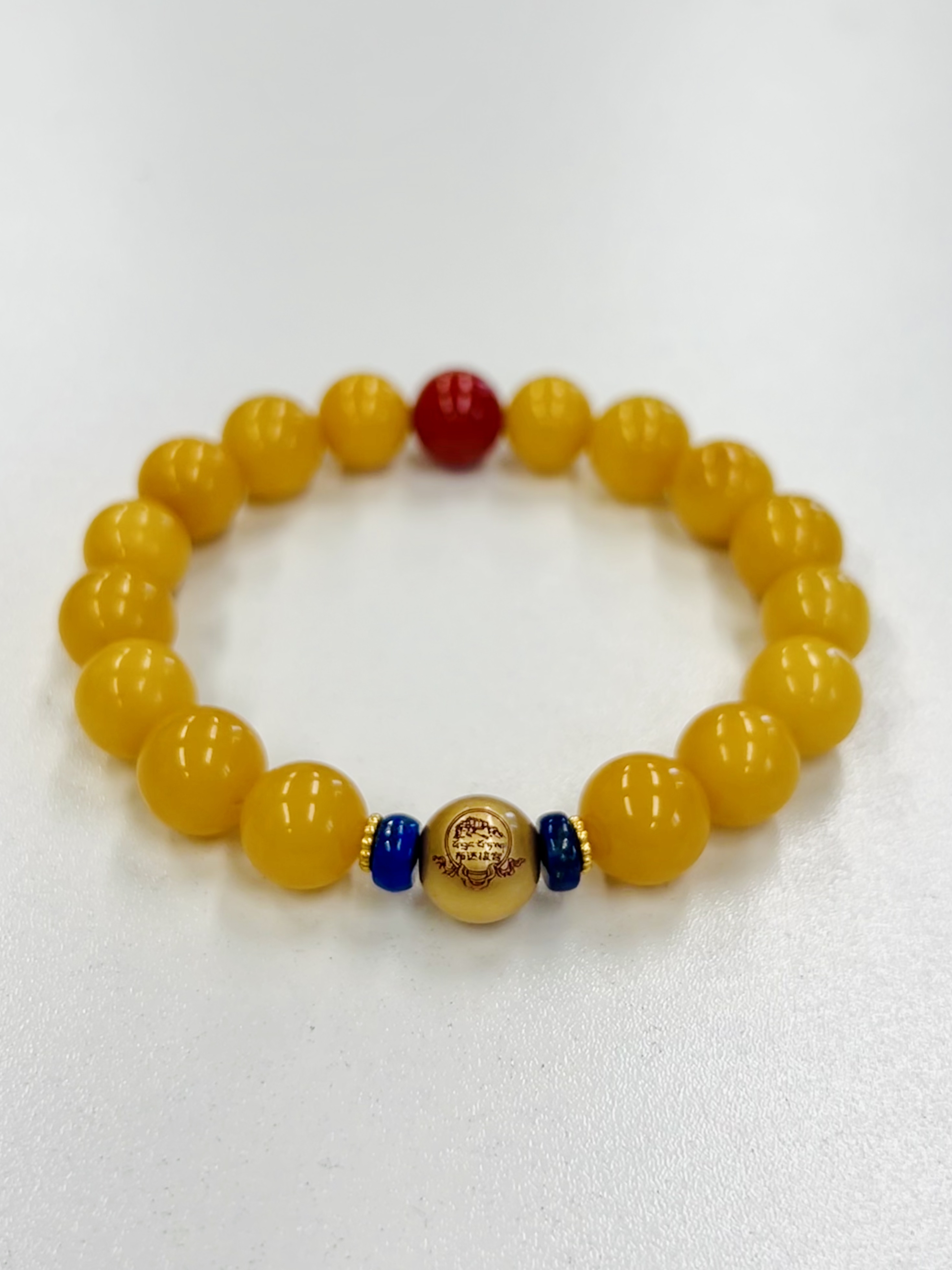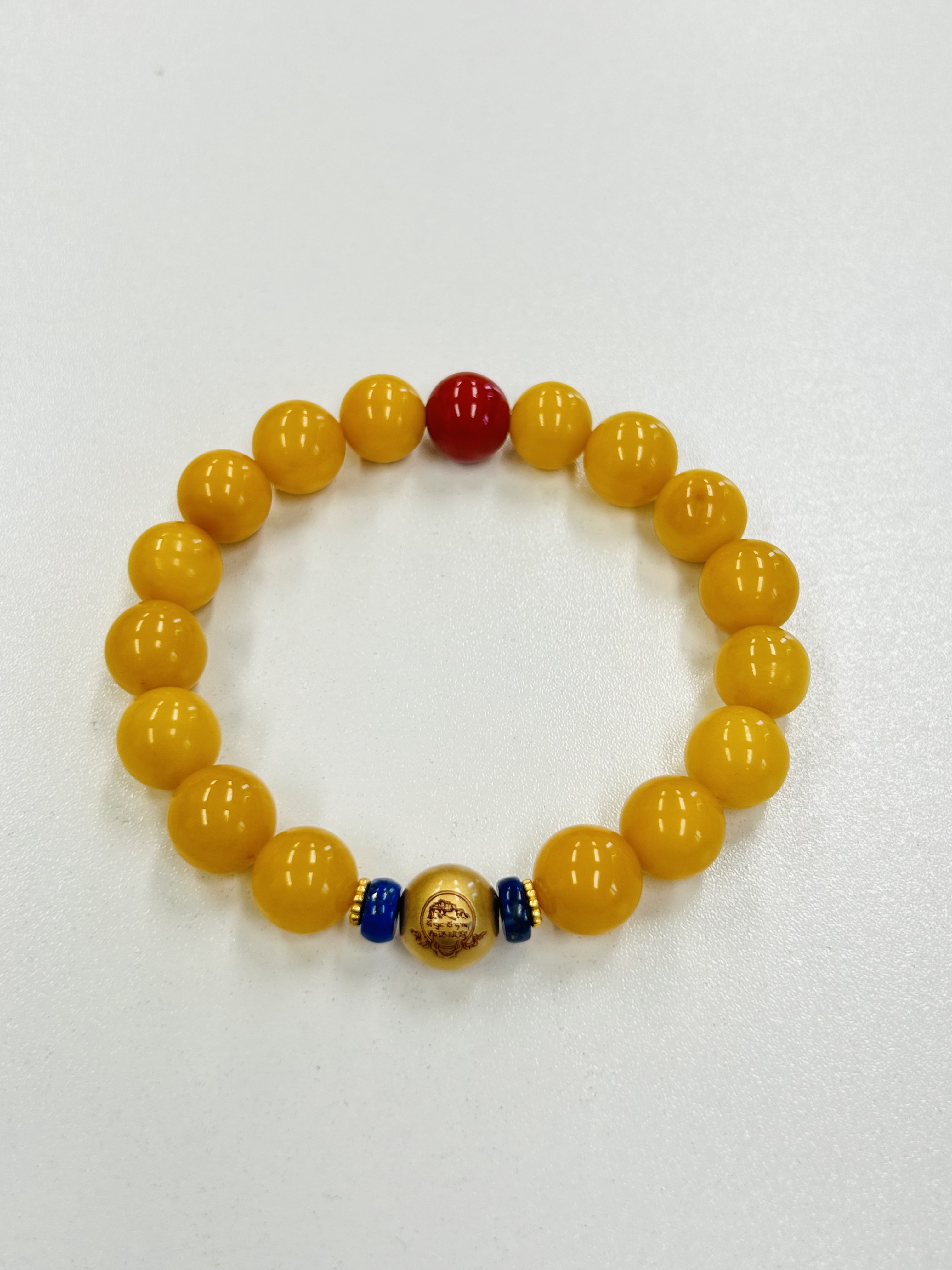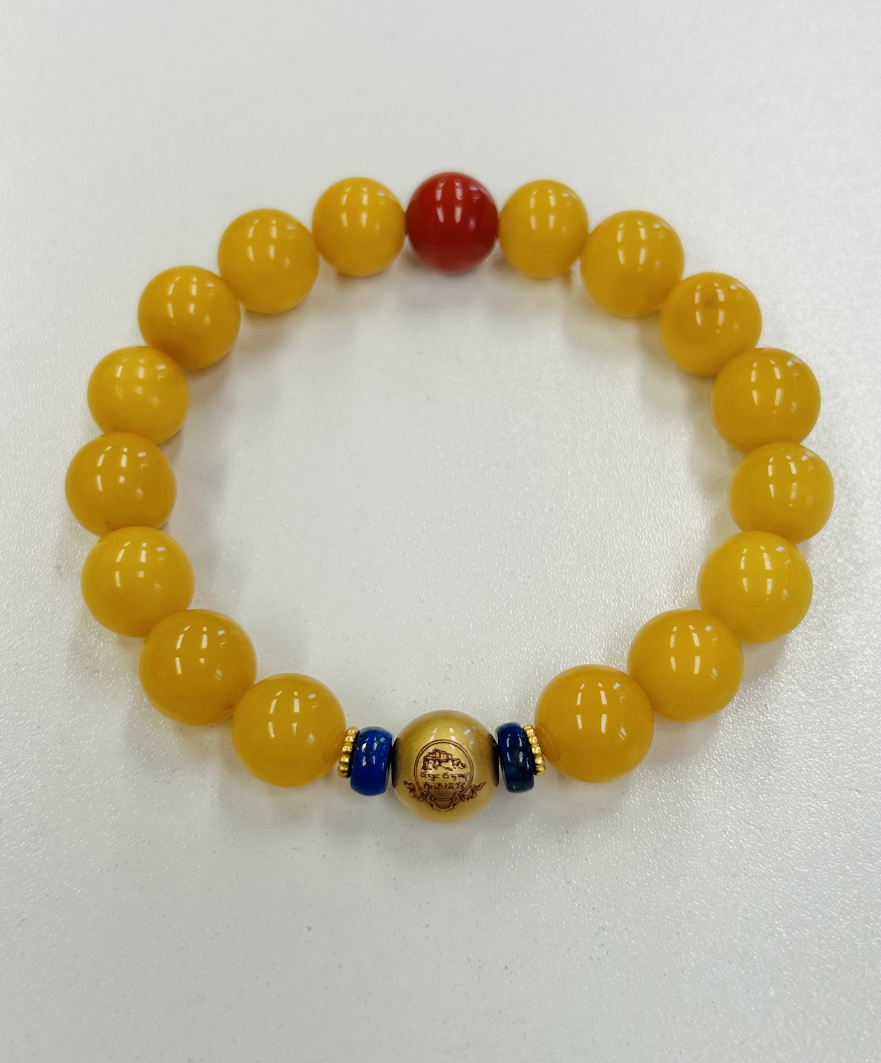 材质:蜜蜡、朱砂、布达拉宫银镀金logo珠
