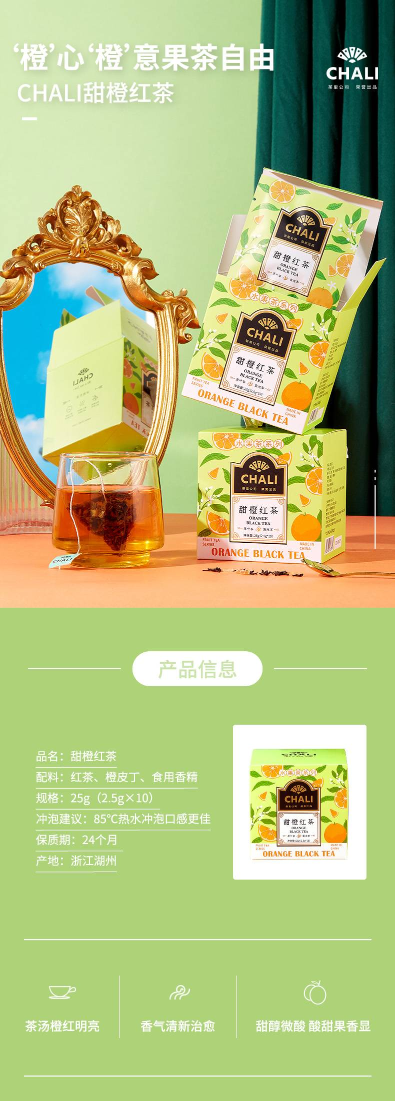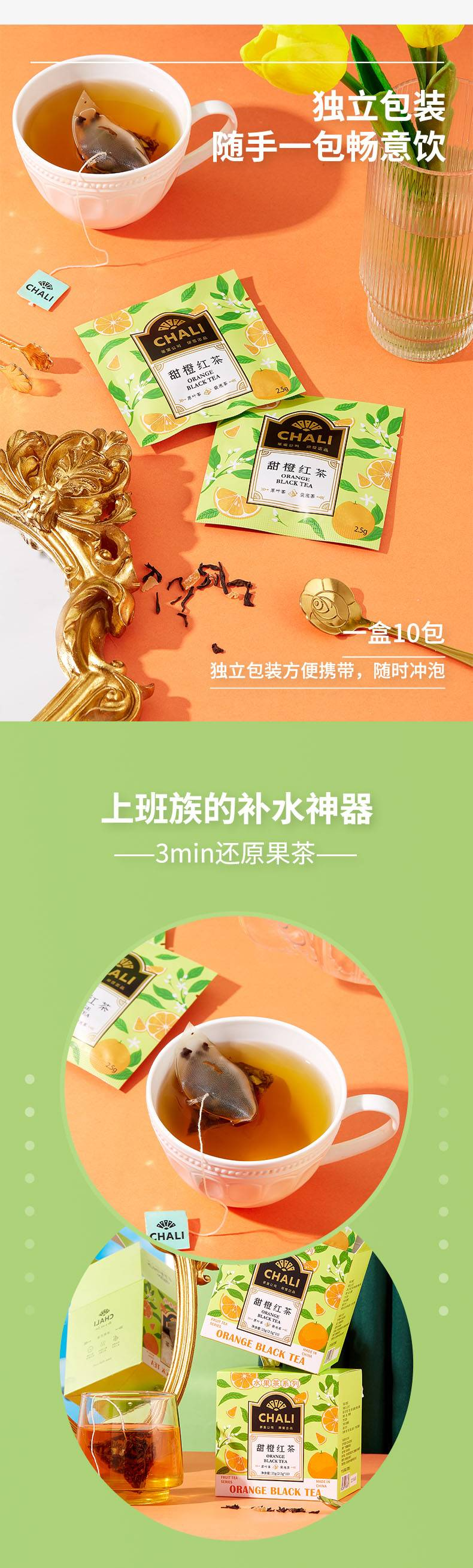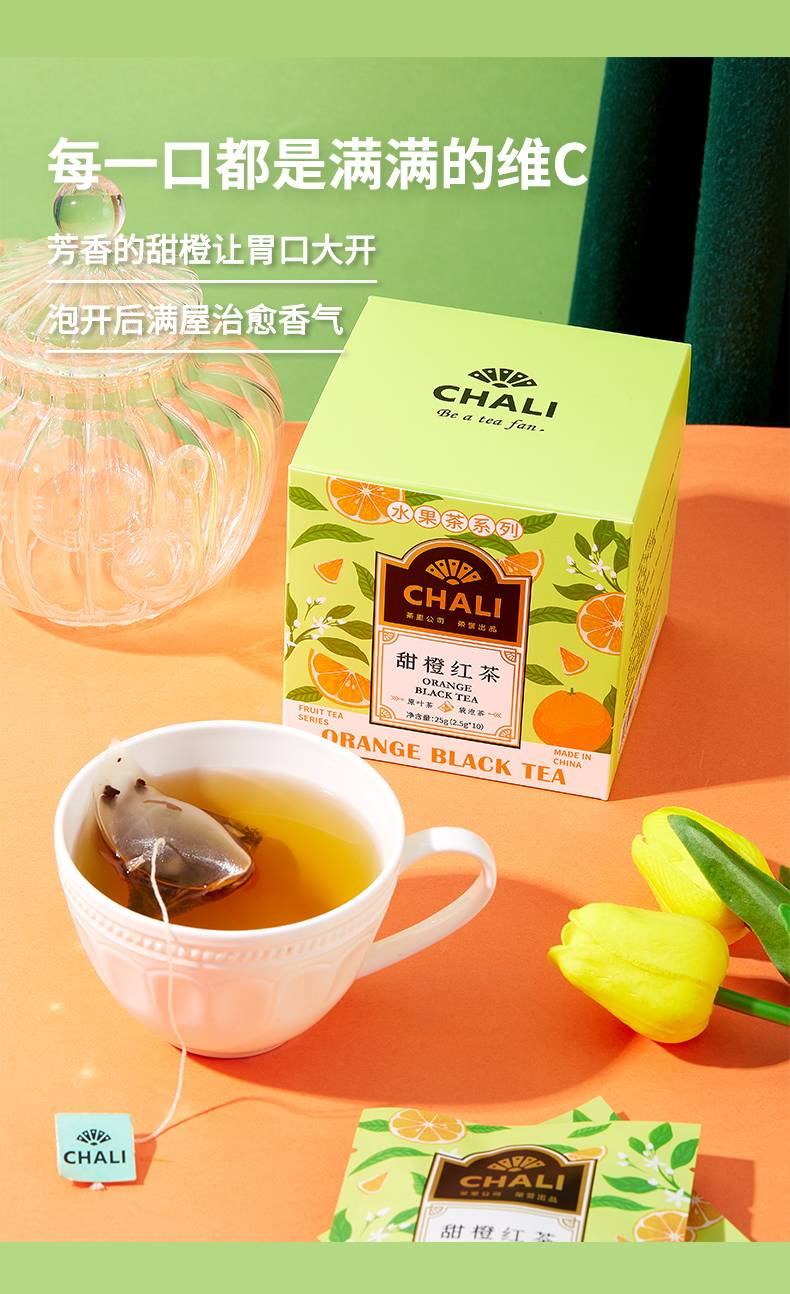 【两盒】茶里CHALI高端袋泡茶甜橙红茶25g(2.5g*10包/盒)