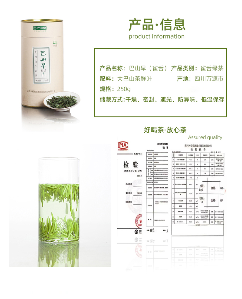 巴山早2024新茶雀舌绿茶250g罐装高山云雾茶清香型茶叶硒茶自己喝茶园直销