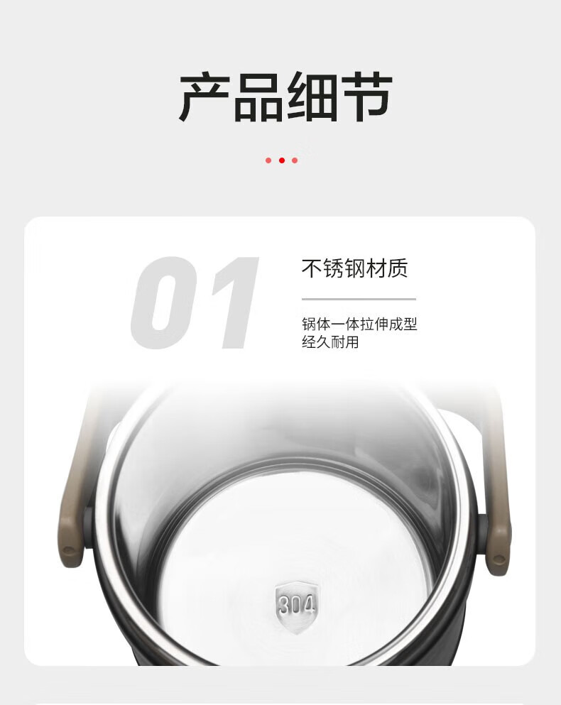 美的 电热水壶 1.7L 304不锈钢烧水壶 AEK1769