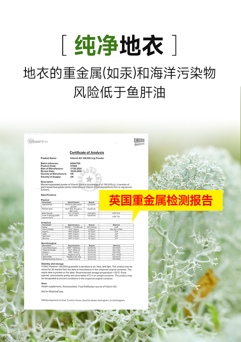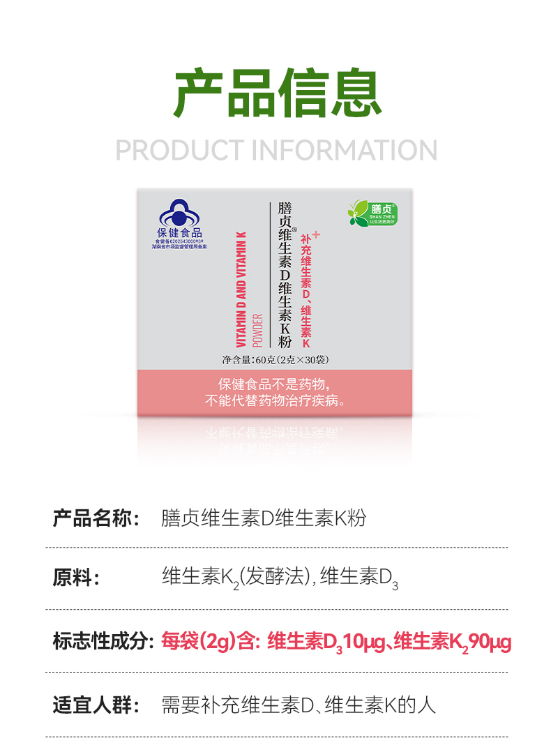 膳贞维生素D3K2粉中老年地衣D3粉DK粉植物性D3