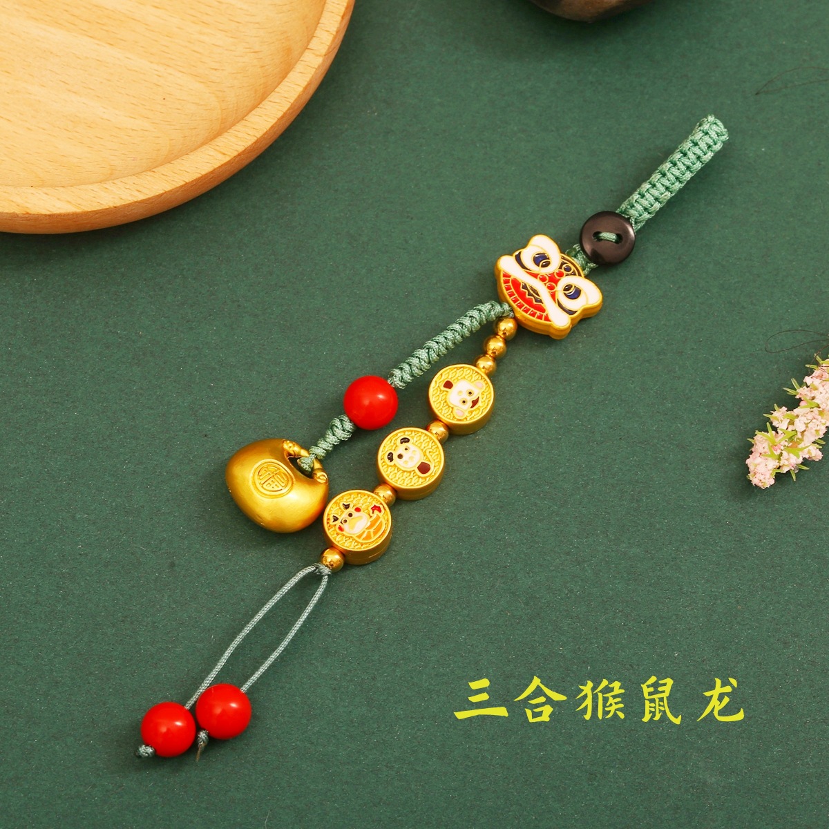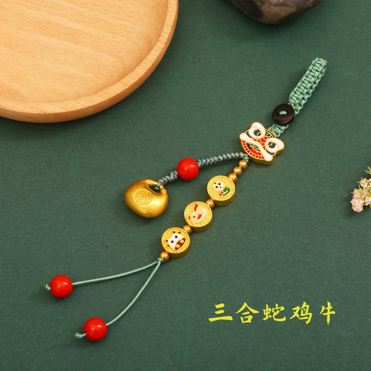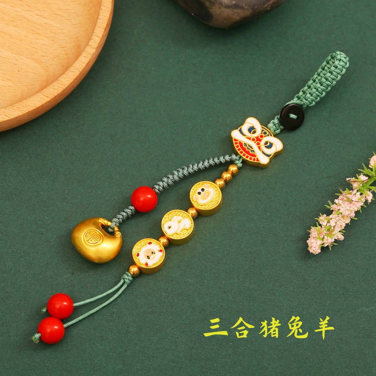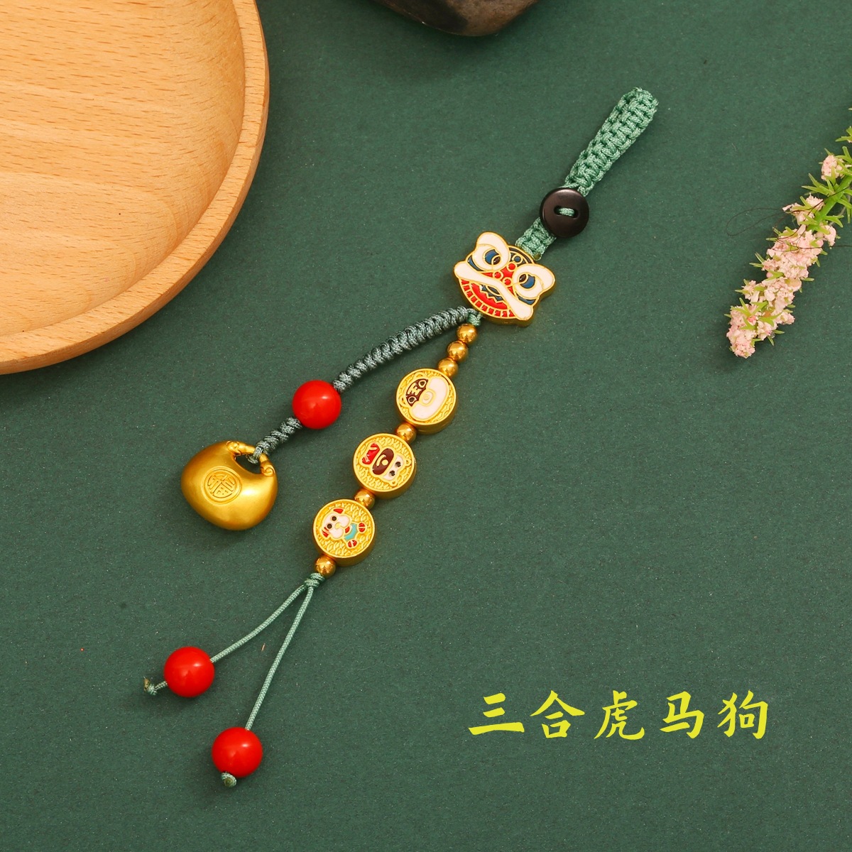 【敦煌三合十二生肖醒狮挂件】新款十二生肖三合 配件古法配饰 饰品沙金车钥匙扣钥匙包挂件