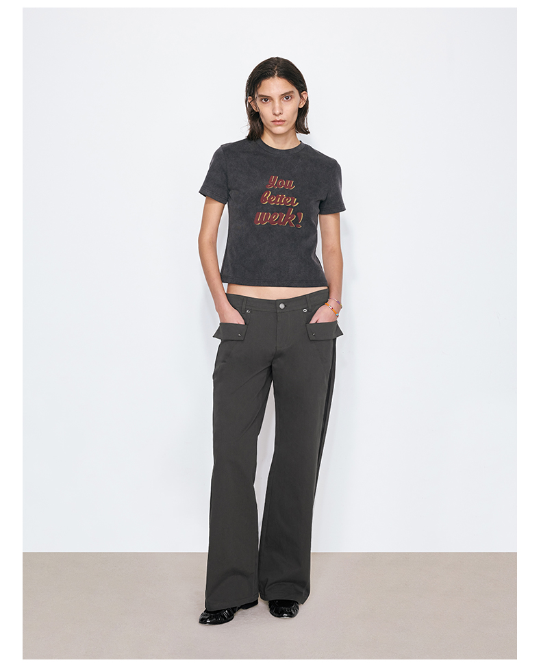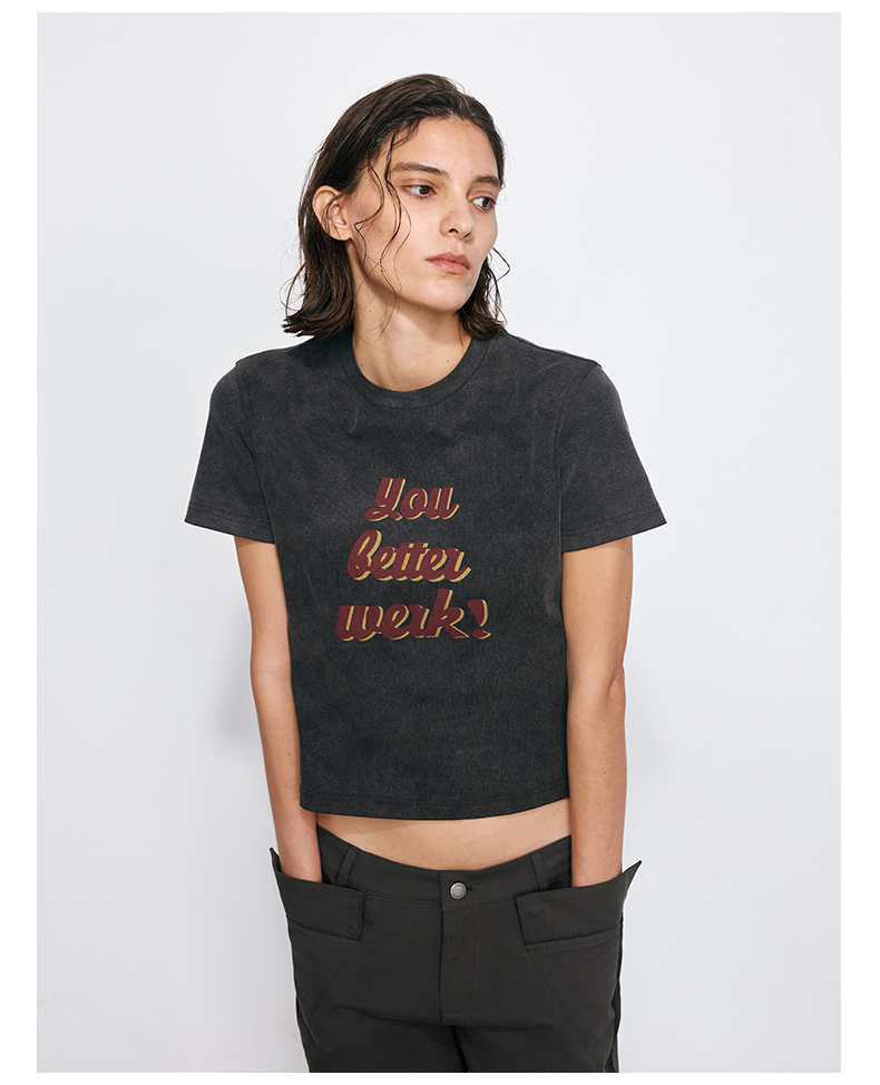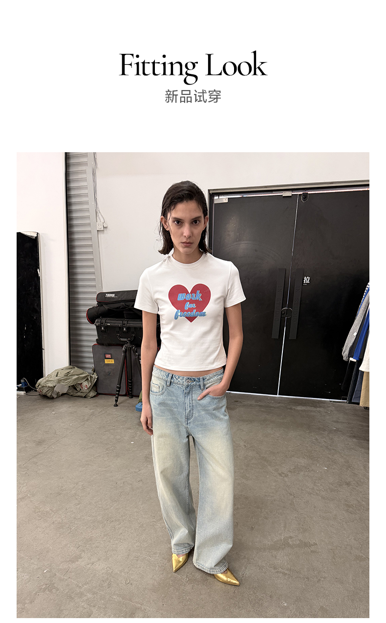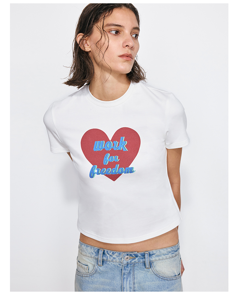 NUTH爱心撞色字母印花修身短款短袖T恤女 白色/灰色