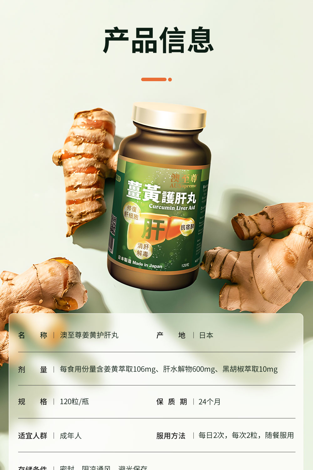 (香港直邮)澳至尊姜黄护肝片120粒 保质期至2028-01-06