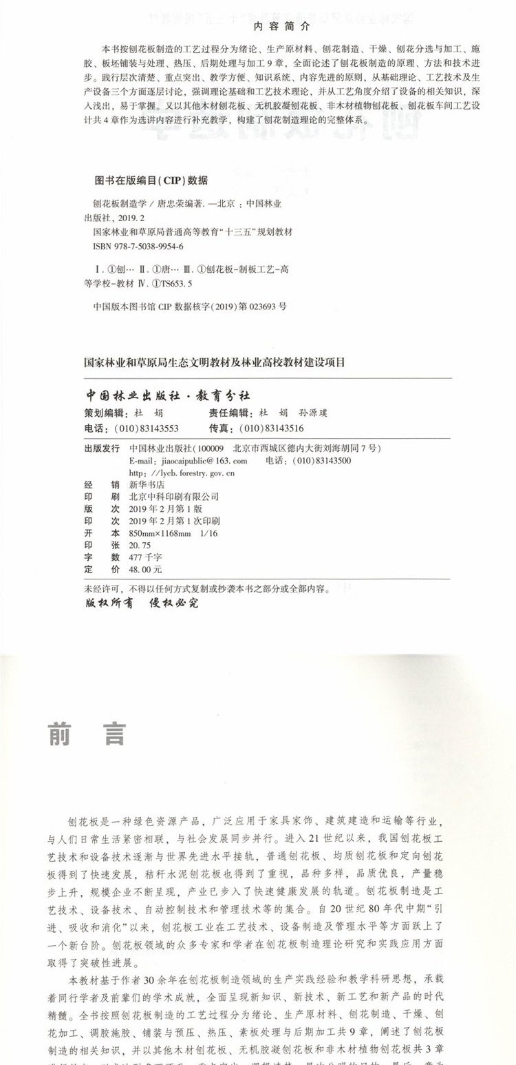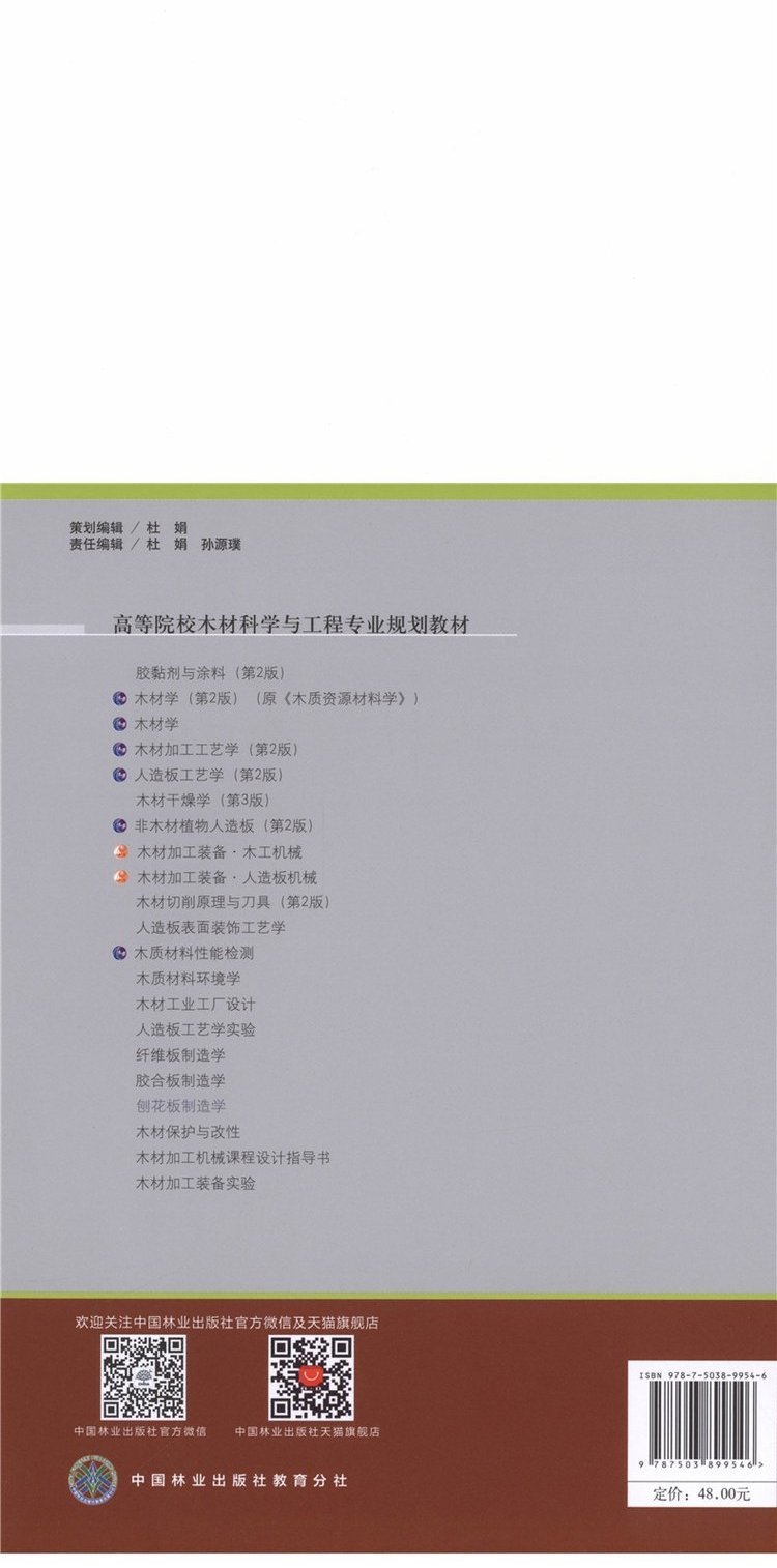 刨花板制造学 9954 林业和草原局普通高等教育十三五规划教材 中国林业出版社
