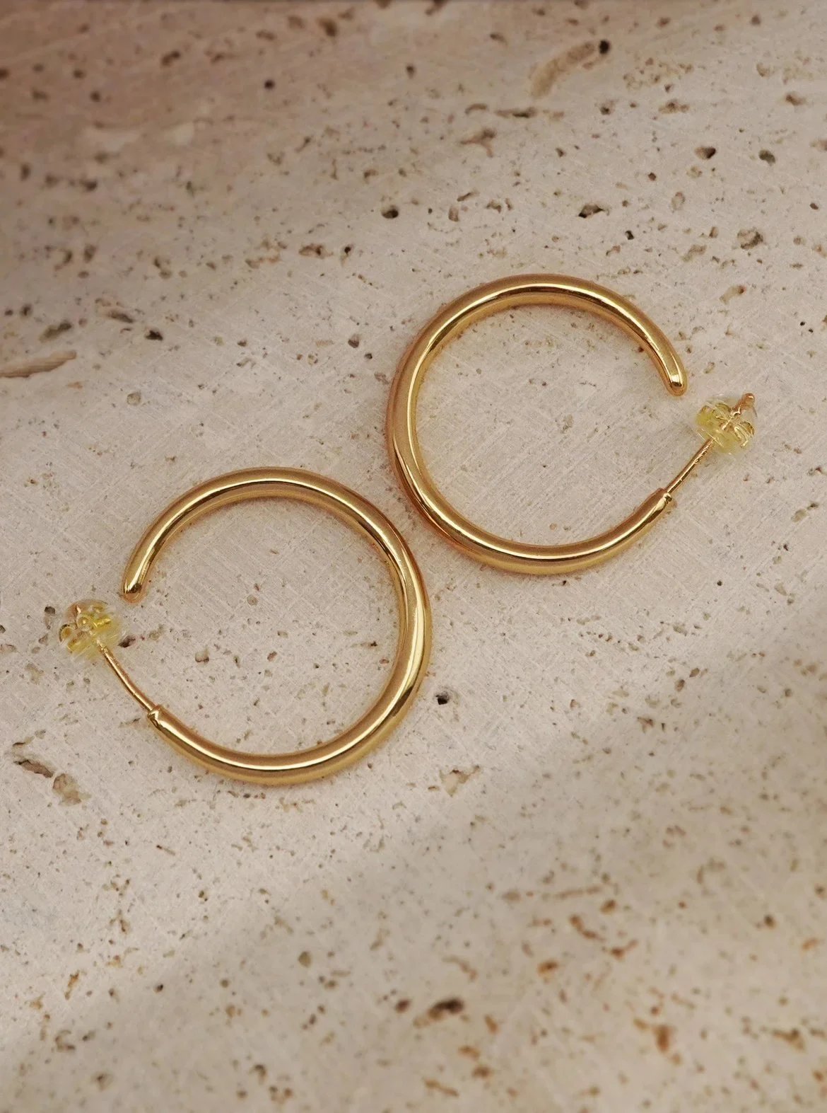 经典Hoop耳圈,恰到好处的法式松弛感✨✨ 鎏金色Hoop耳圈,2.6cm直径,恰到好处的法式松弛感。 简约却不失精致,圆润线条勾勒出优雅弧度,点亮面部轮廓,轻松驾驭日常与正式场合。 无论是慵懒的针织衫,还是利落的西装外套, 它都能为你的造型增添一抹不经意的法式风情,诠释松弛有度的时髦态度。💫🤩