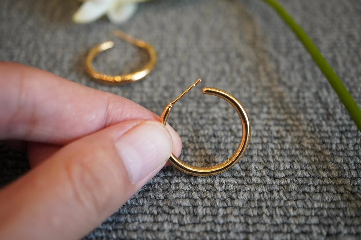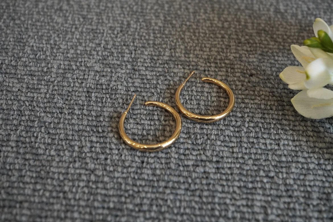 我愿称之为素圈界的天花板❗️干净利落大气❗️ 驾驭一切脸型!累计卖出千对的素耳环,包揽我一整个四季💯 两头细中间略宽一点的半圈C形,简单时髦大气✨ 2.6cm的直径,适合任意脸型,圆脸也可以!方脸也好看!精致又有小脸效果👍