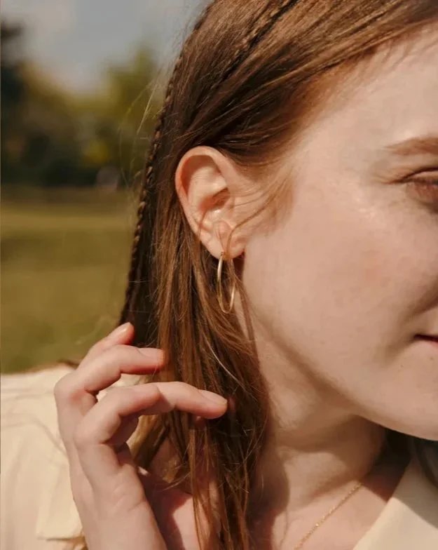 Hoop耳圈用简约百搭的特性,点亮你的日常 无论是日常穿搭还是正式场合,Hoop耳圈都能轻松驾驭, 展现出优雅与随性的完美平衡。 其圆润的线条不仅修饰脸型,还能为整体造型增添一丝灵动感 法式风格的魅力在于细节的精致与不经意的时尚感, 而Hoop耳圈正是这种理念的绝佳体现。