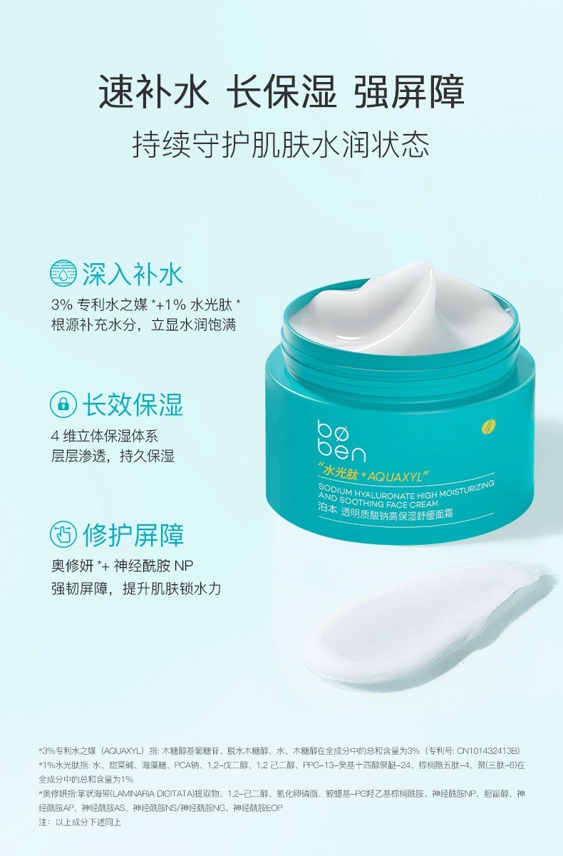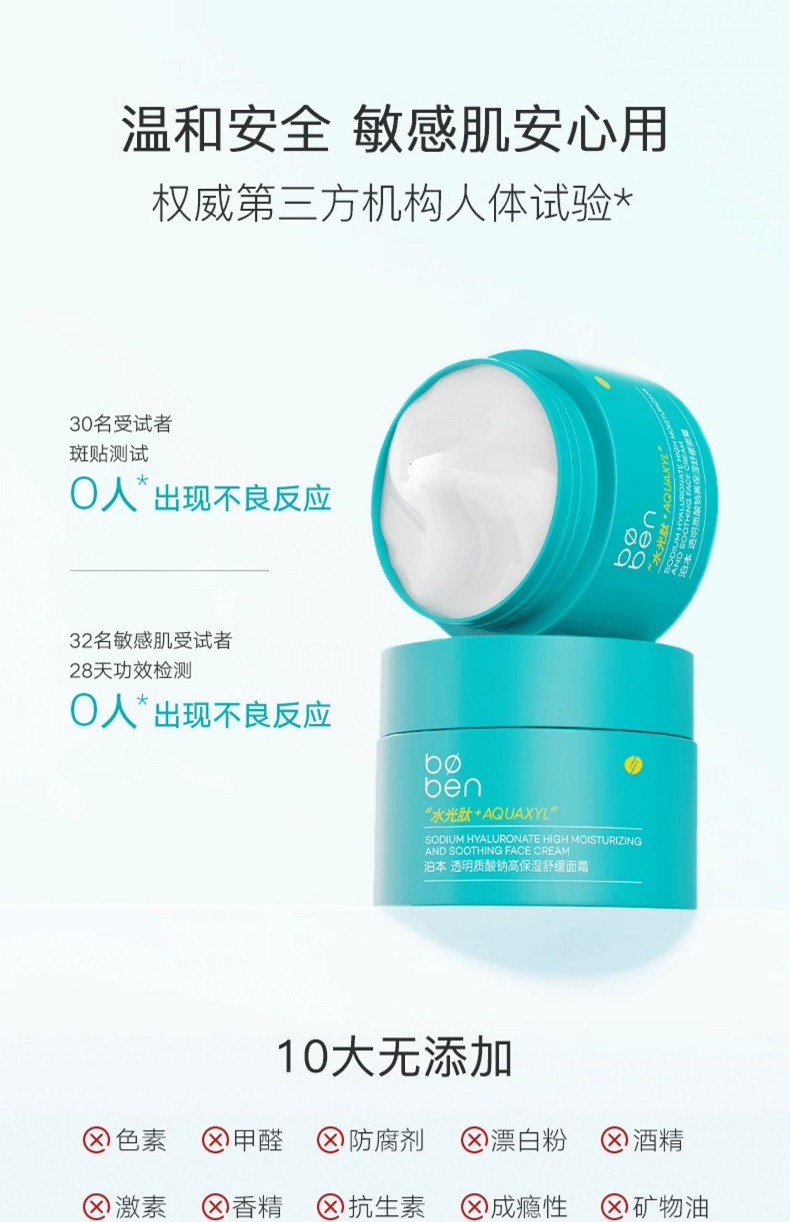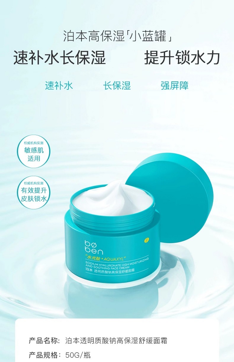 泊本透明质酸钠高保湿舒缓面霜50g 改善干燥补水舒缓修护皮肤屏障 心选到家