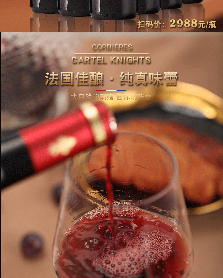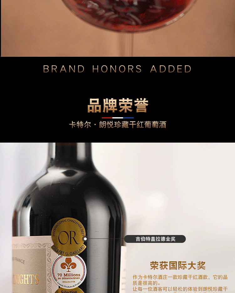 【超值8瓶装 AOP等级】法国 卡特尔朗悦干红葡萄酒 AOP等级 750ml*4瓶/箱【送1个海马刀+1个倒酒器+2个礼盒】