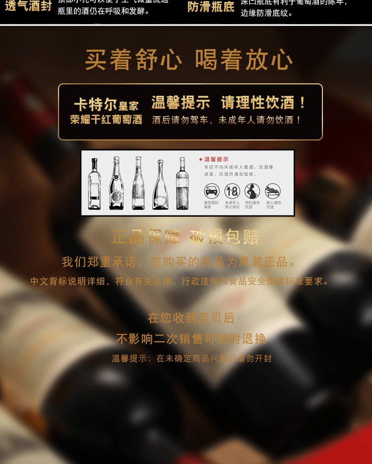| 【品名】法国 卡特尔朗悦干红葡萄酒 AOP等级 【规格】750ml*4瓶/箱 【产地】法国 【发货包装】独立包装盒 【发货地】山东 【发货快递】德邦 【不发货区域】新疆、西藏、内蒙古、宁夏、甘肃、青海、黑龙江、吉林、港澳台 【发货时效】48-72小时,周末节假日顺延 【特别提醒】非质量问题不支持7天无理由退换货,不支持拦截、拒收,敬请谅解~ |