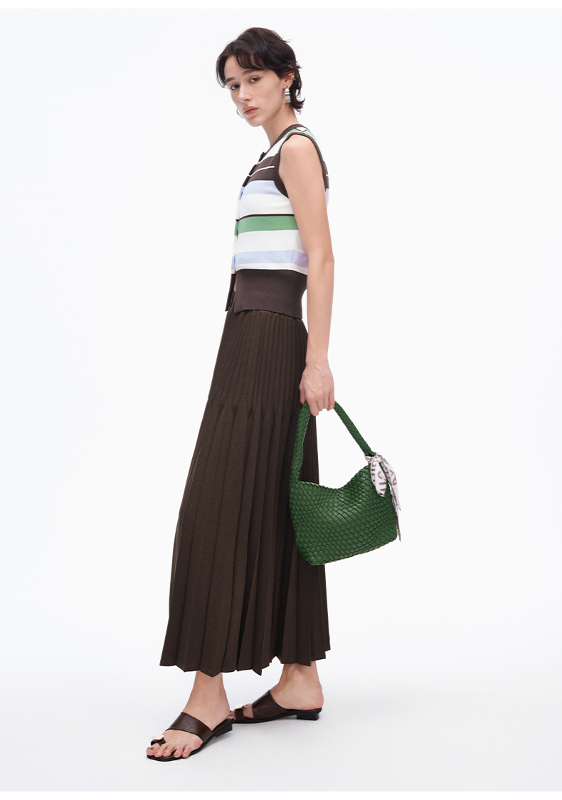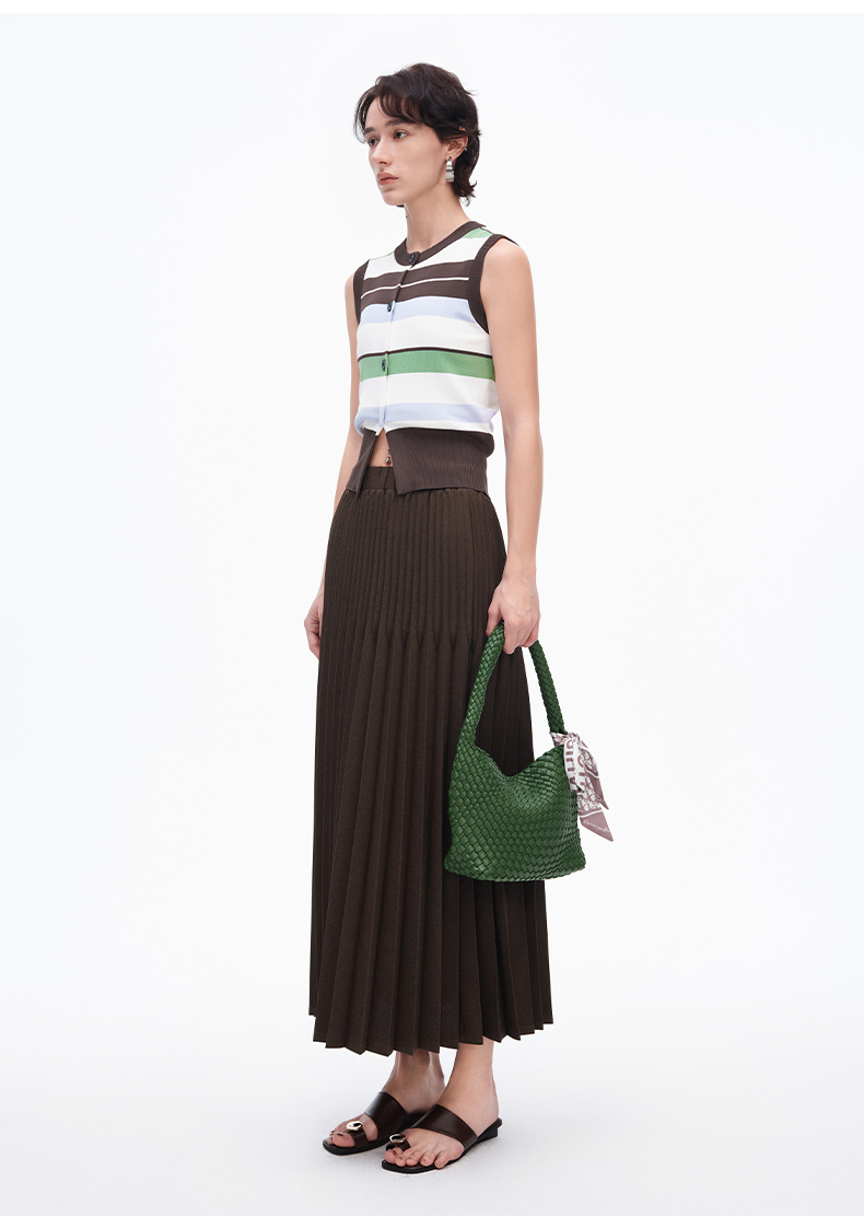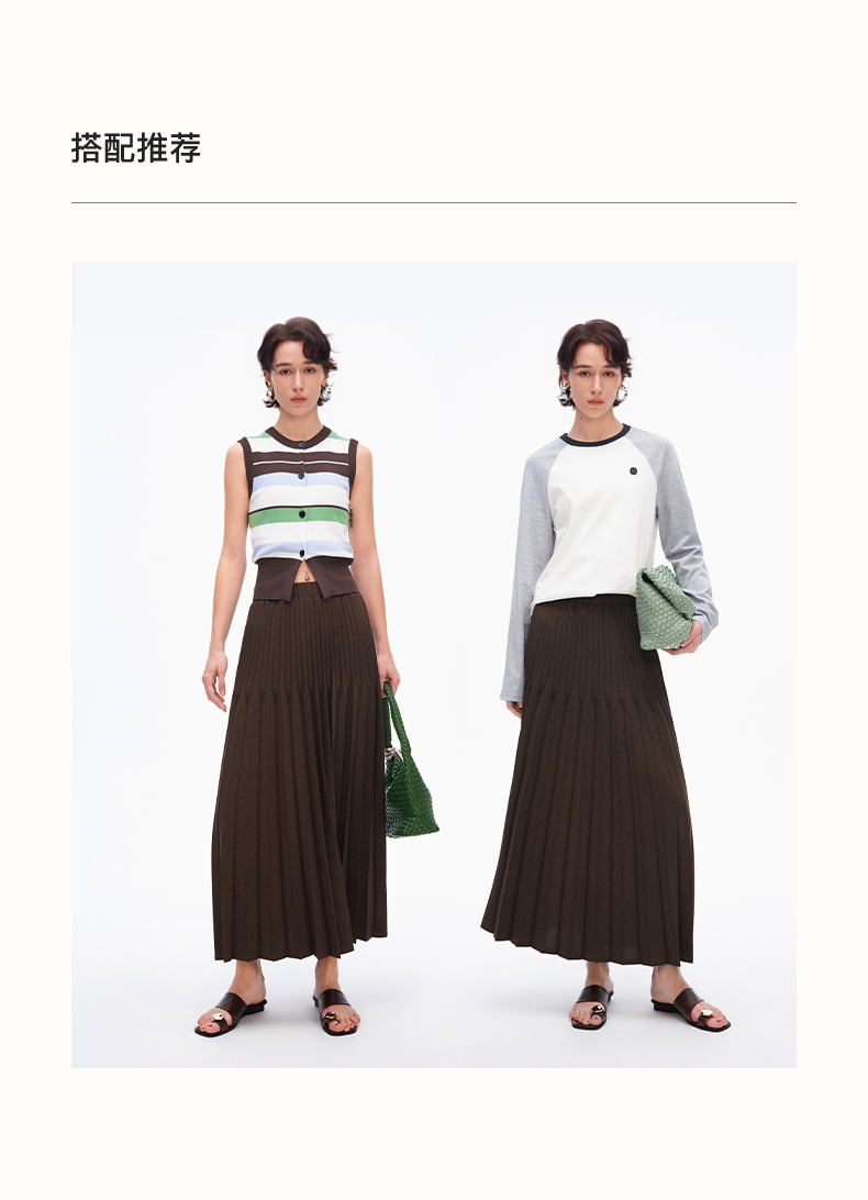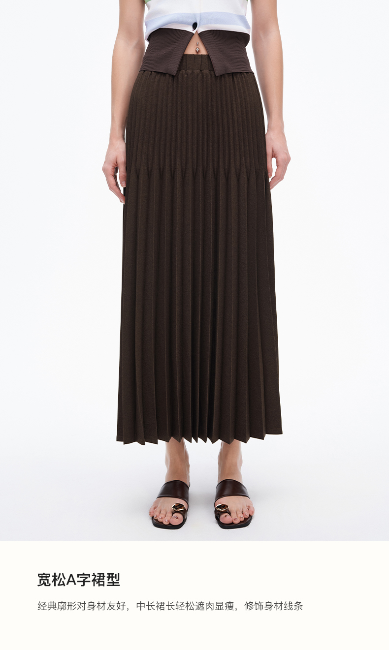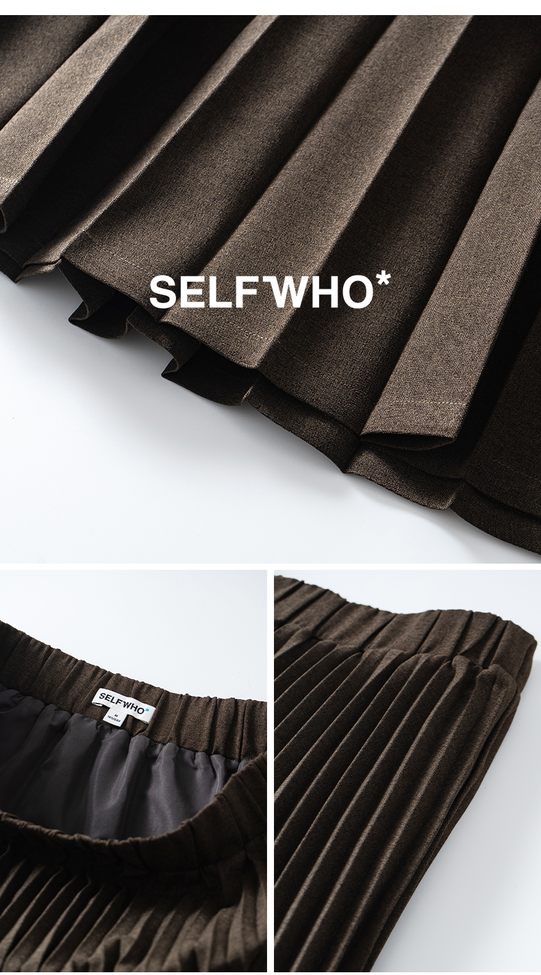 SELFWHO重工立体双压褶半身裙女新款显瘦百搭中长款a字半裙