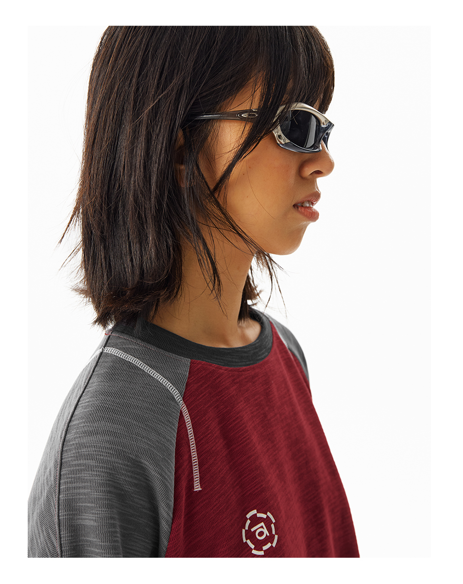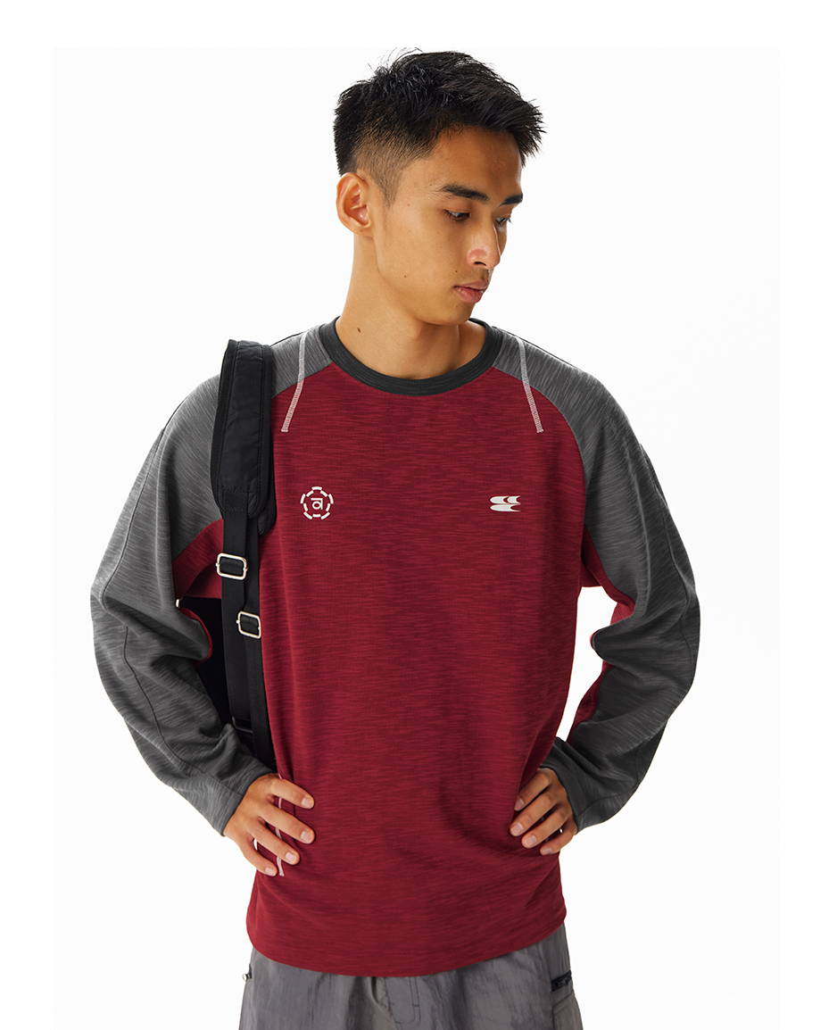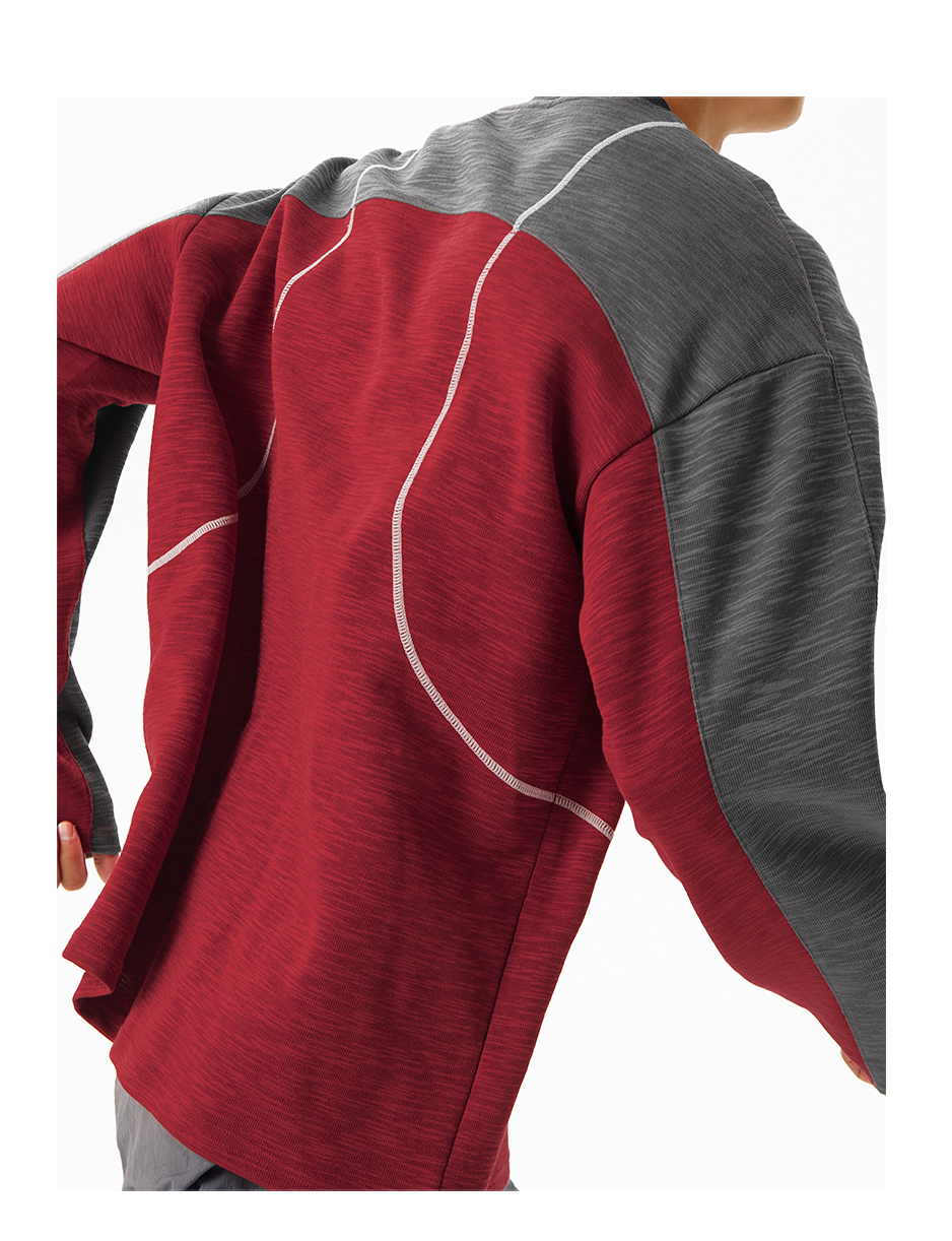CryingCenter 糯感竹节棉撞色运动线条长袖 哭喊中心