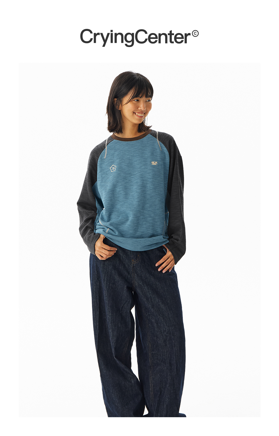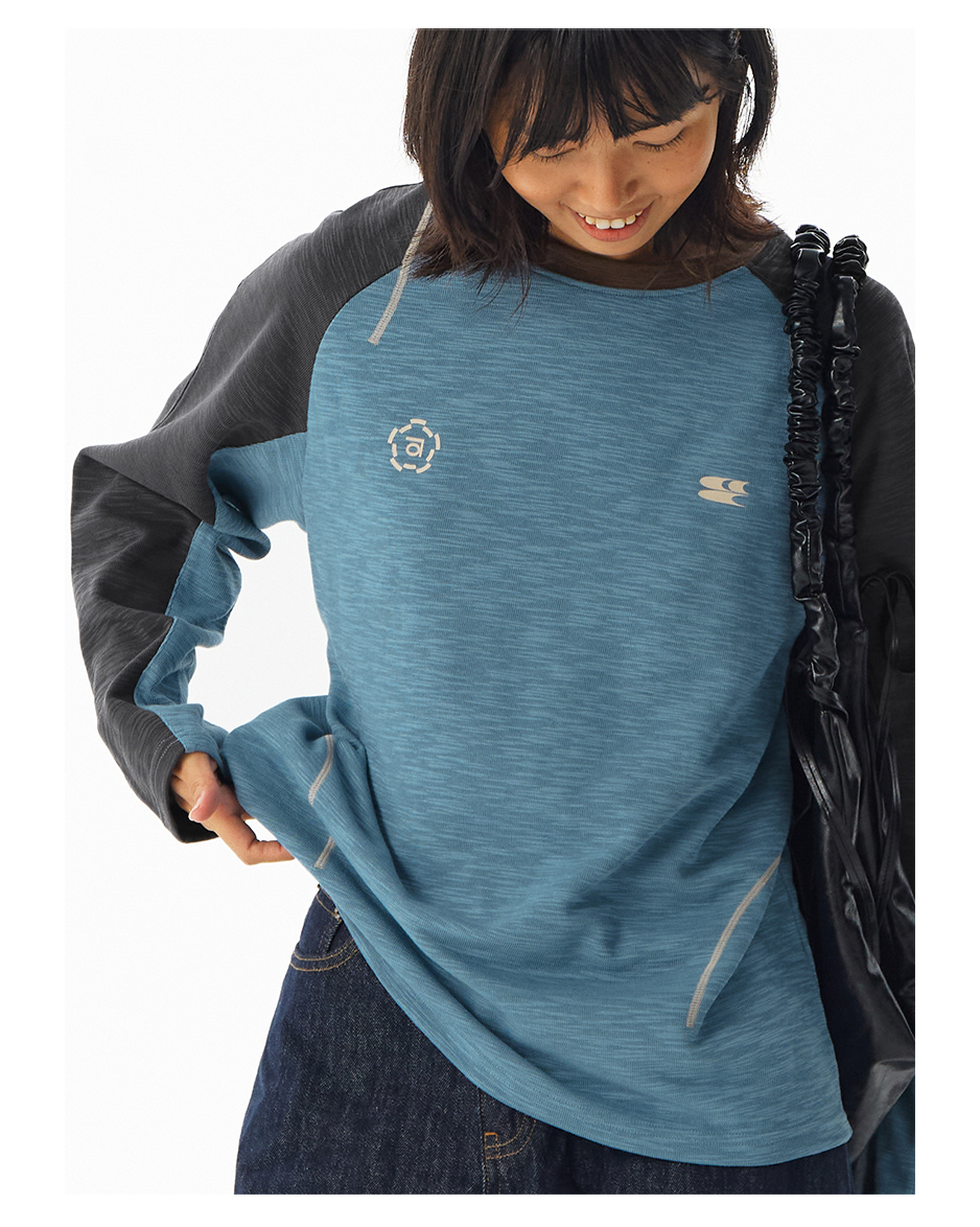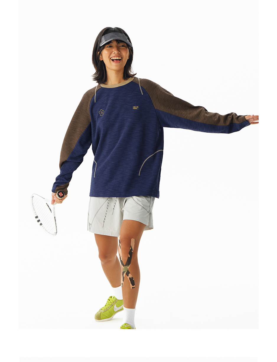 CryingCenter 糯感竹节棉撞色运动线条长袖 哭喊中心