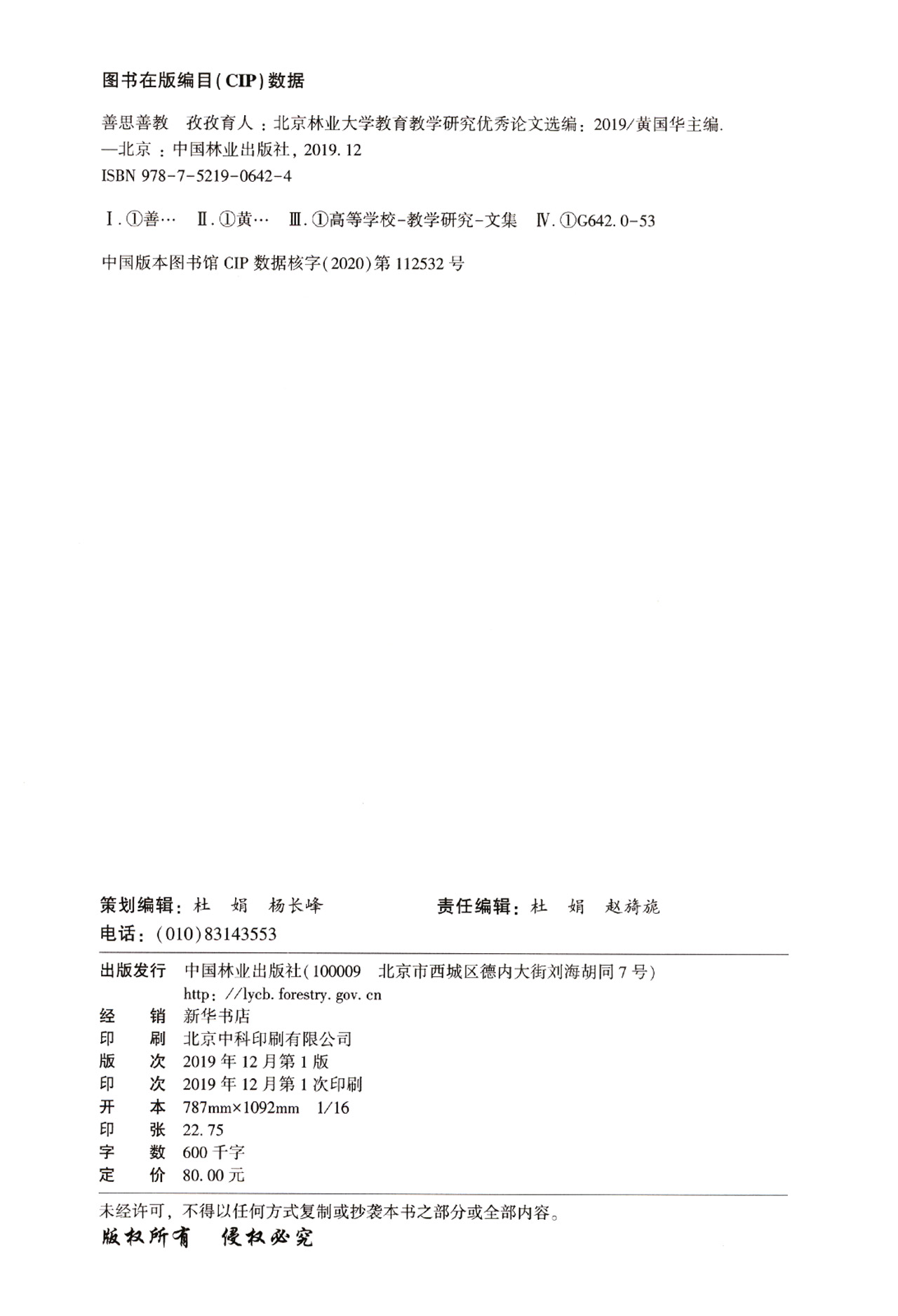 善思善教孜孜育人(北京林业大学教育教学研究优秀论文选编2019) 黄国华 0642 中国林业出版社