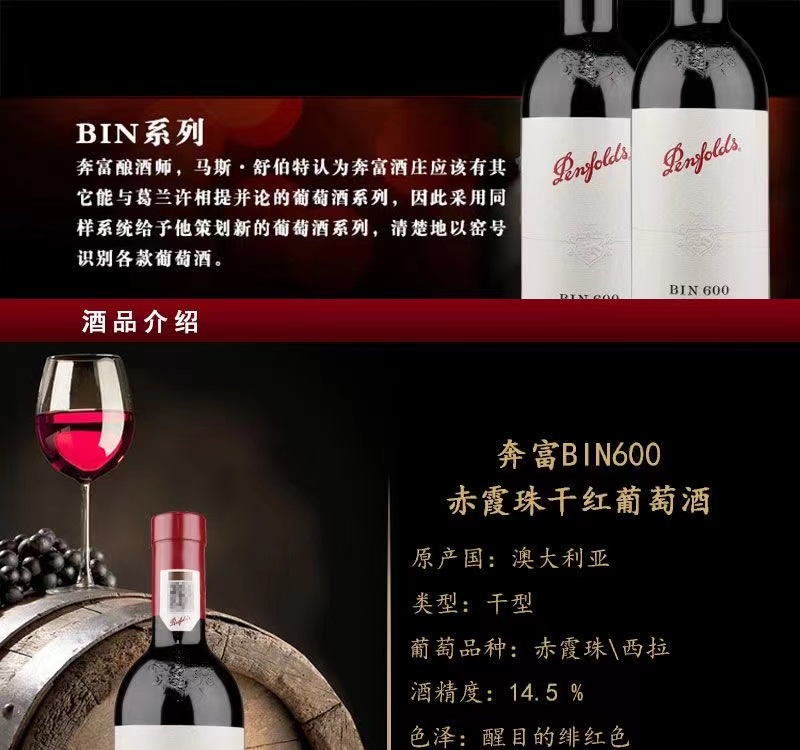奔富BIN600赤霞珠设拉子葡萄酒750ml