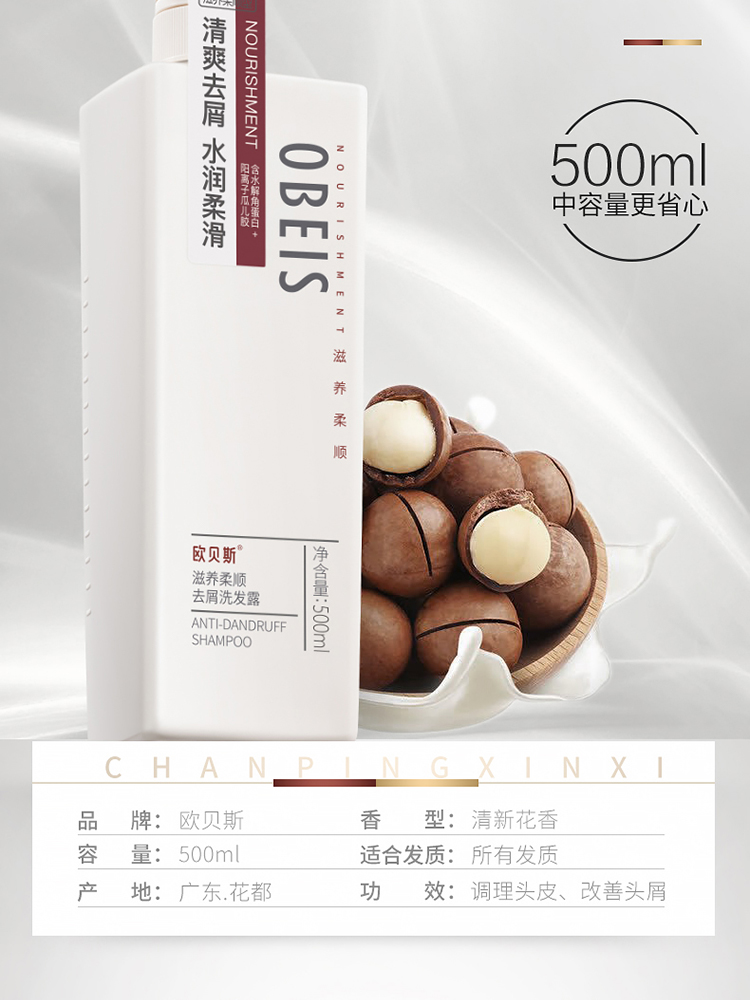 欧贝斯(obeis)滋养头皮洗发水500ml 去屑洗发露洗发膏男女通用(滋养柔顺型)