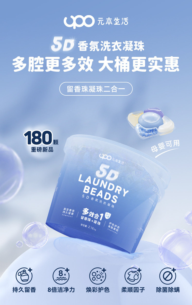【福利购】180颗UPO元本生活5D香氛洗衣凝珠2160g 除菌除螨 持久留香