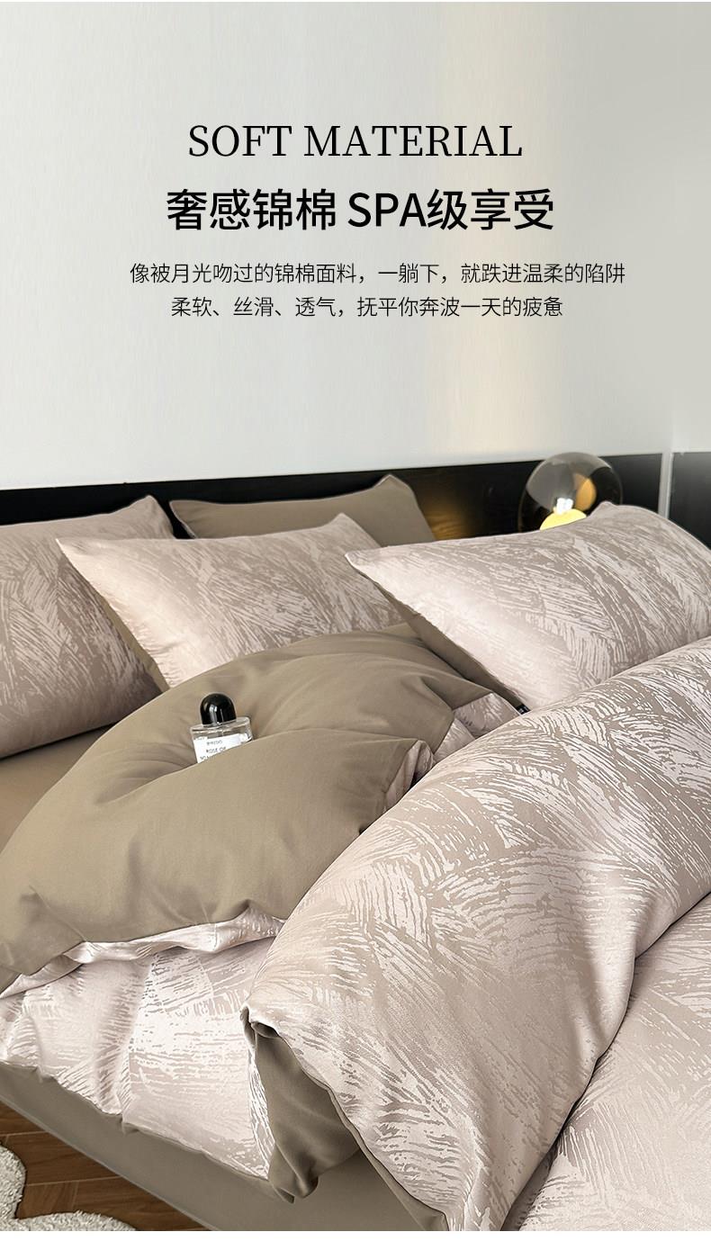 【高级感轻奢提花床上四件套】加厚锦棉肌理纹被套被罩宿舍床单三件套