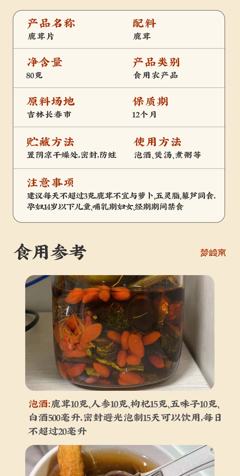 【大补活力 强壮筋骨】梦岭南吉林鹿茸片80g/盒 吉林长白山原产 食补元气 大补