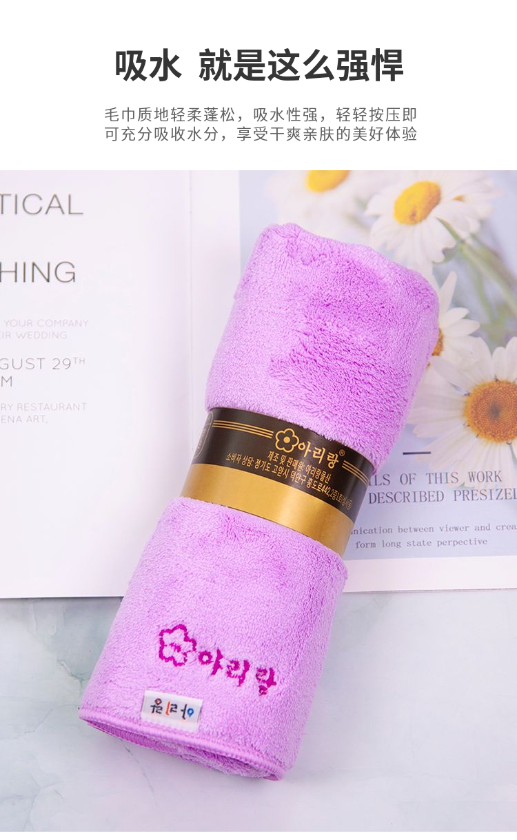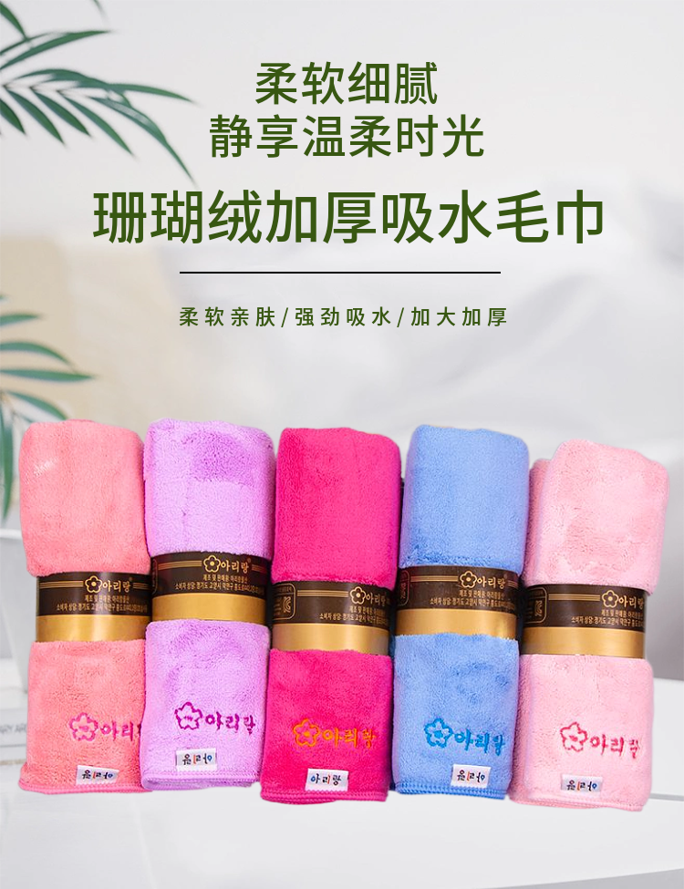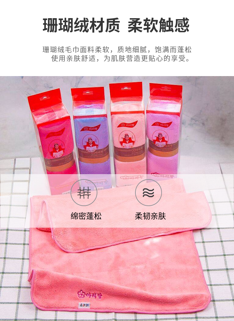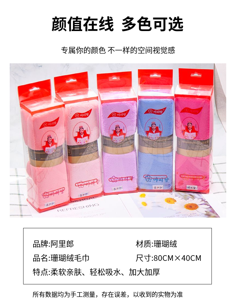 阿里郎 珊瑚绒吸水性强长绒毛巾柔软大毛巾洗脸巾40*80cm/条