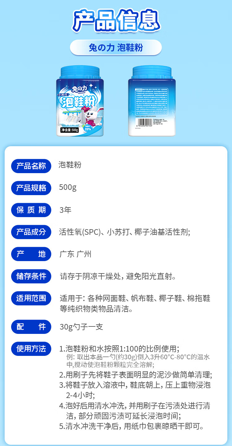 兔の力 生态氧泡泡粉 泡鞋粉500g