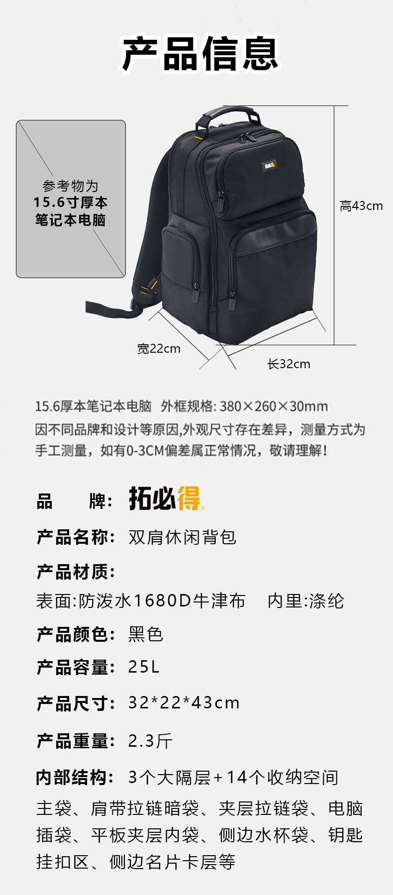 拓必得双肩休闲背包TBD-B02工具包收纳包手提式包