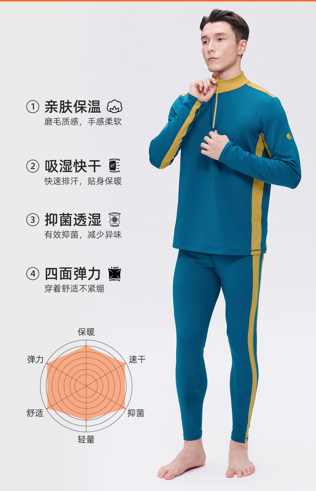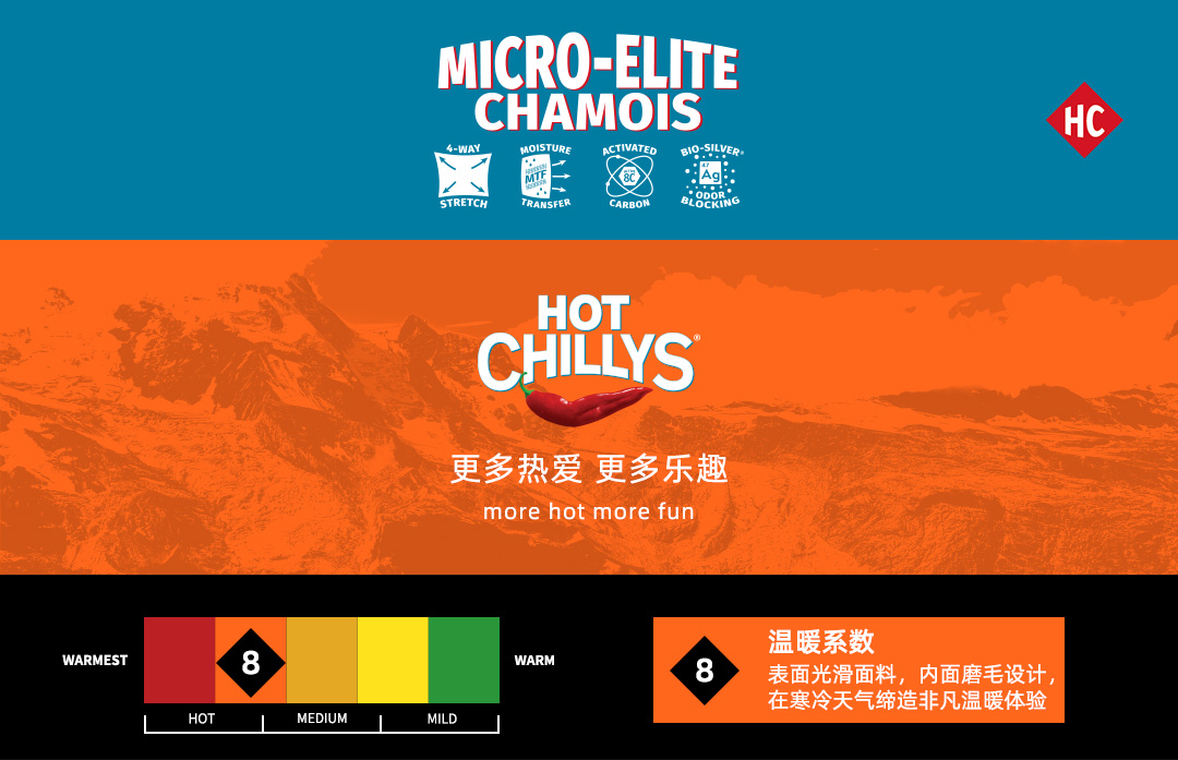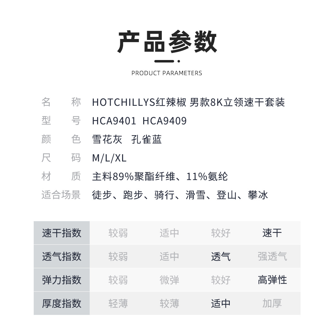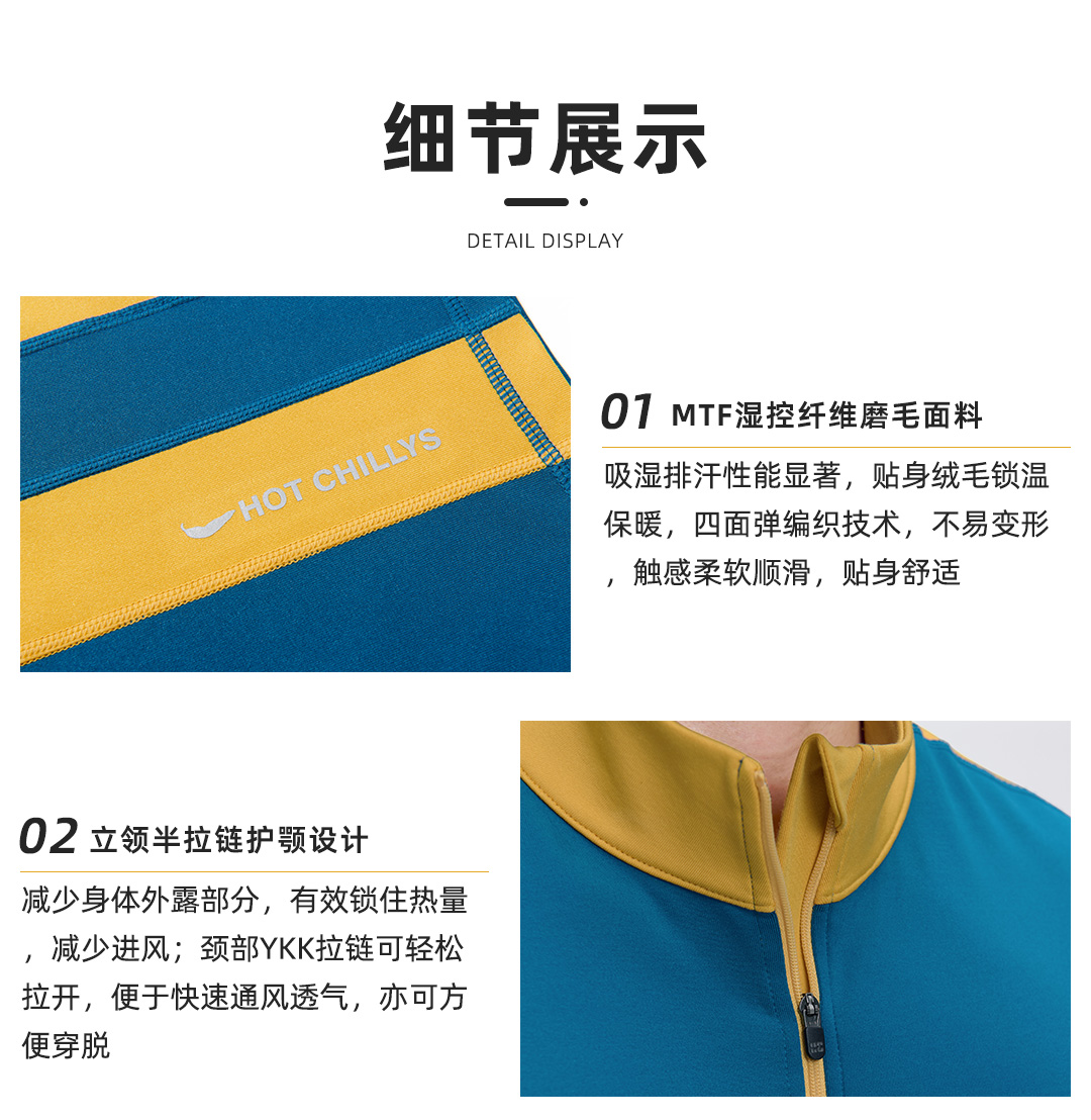 Hotchillys热椒8k磨毛拉领上衣男登山保暖透湿高弹力功能内衣裤HCA9401/9409