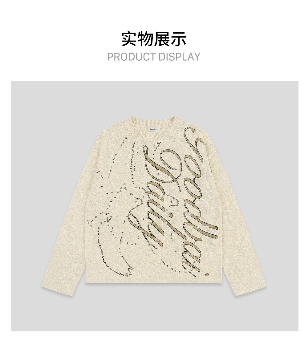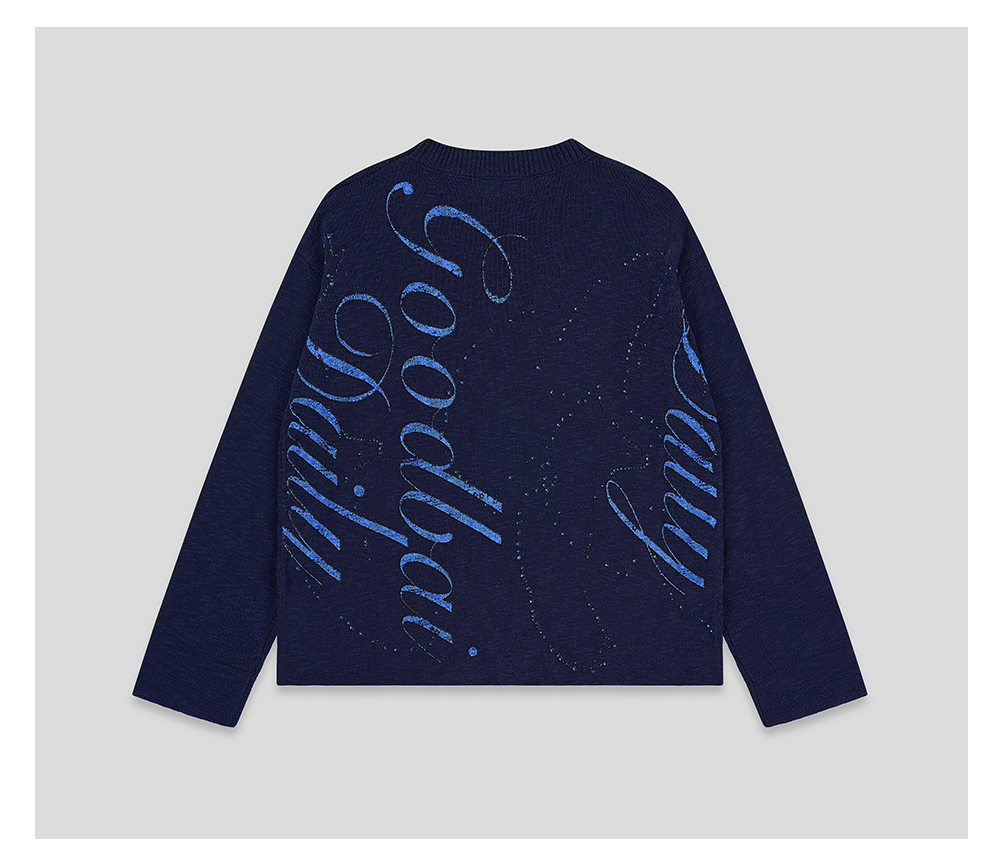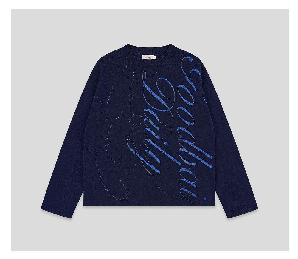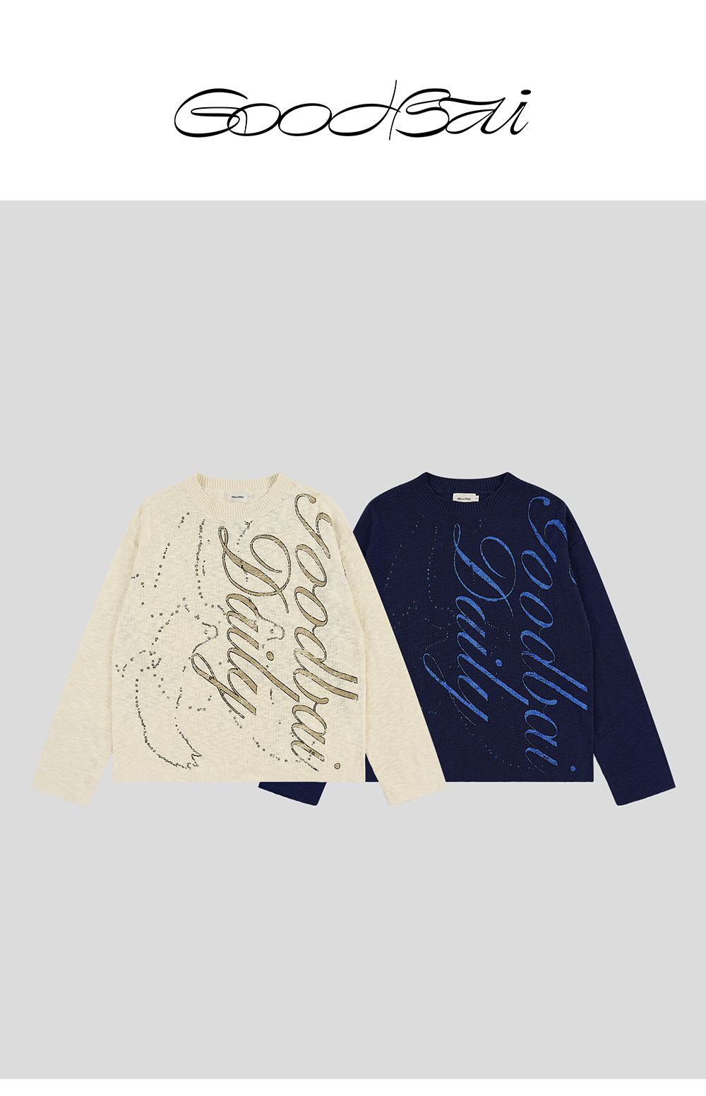 GOODBAI 宽松圆领做旧鸽子logo印花毛衣