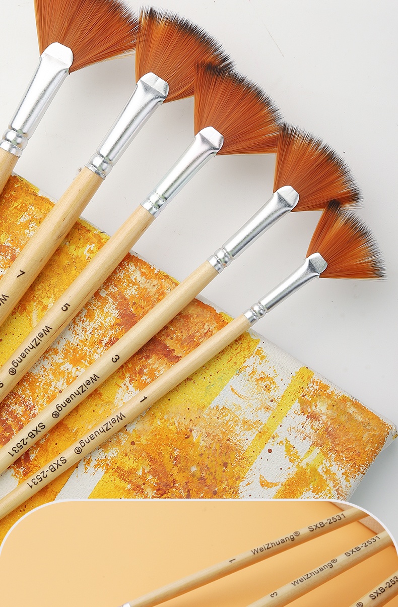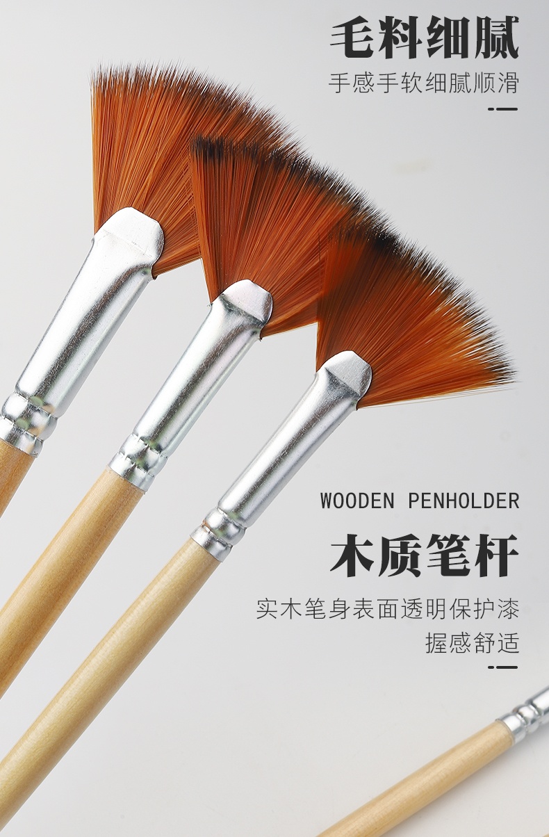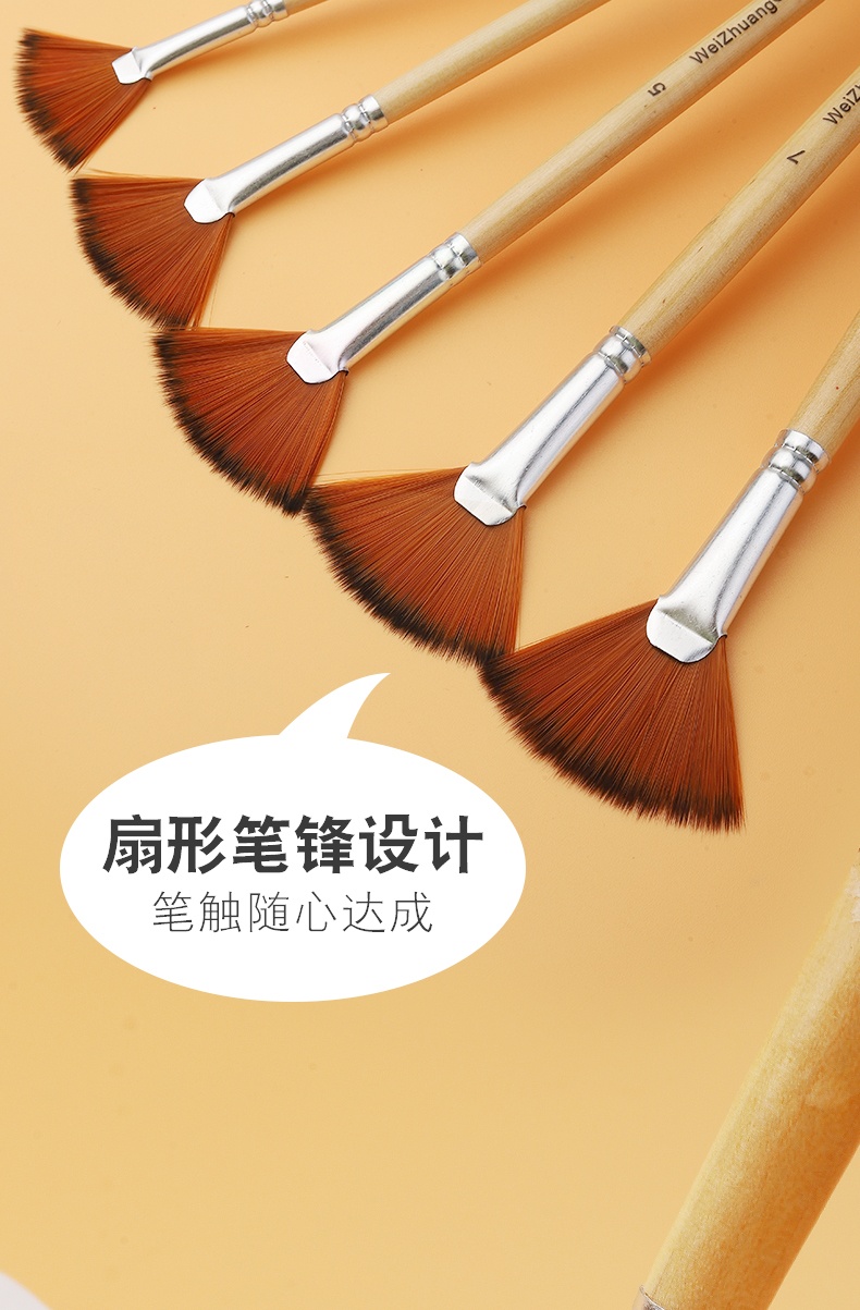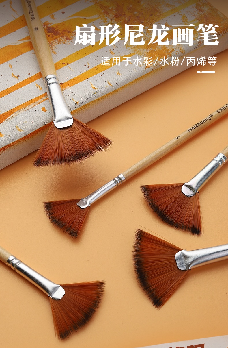 卫庄扇形笔 尼龙毛水粉笔 水彩丙烯联考艺考油画笔套装