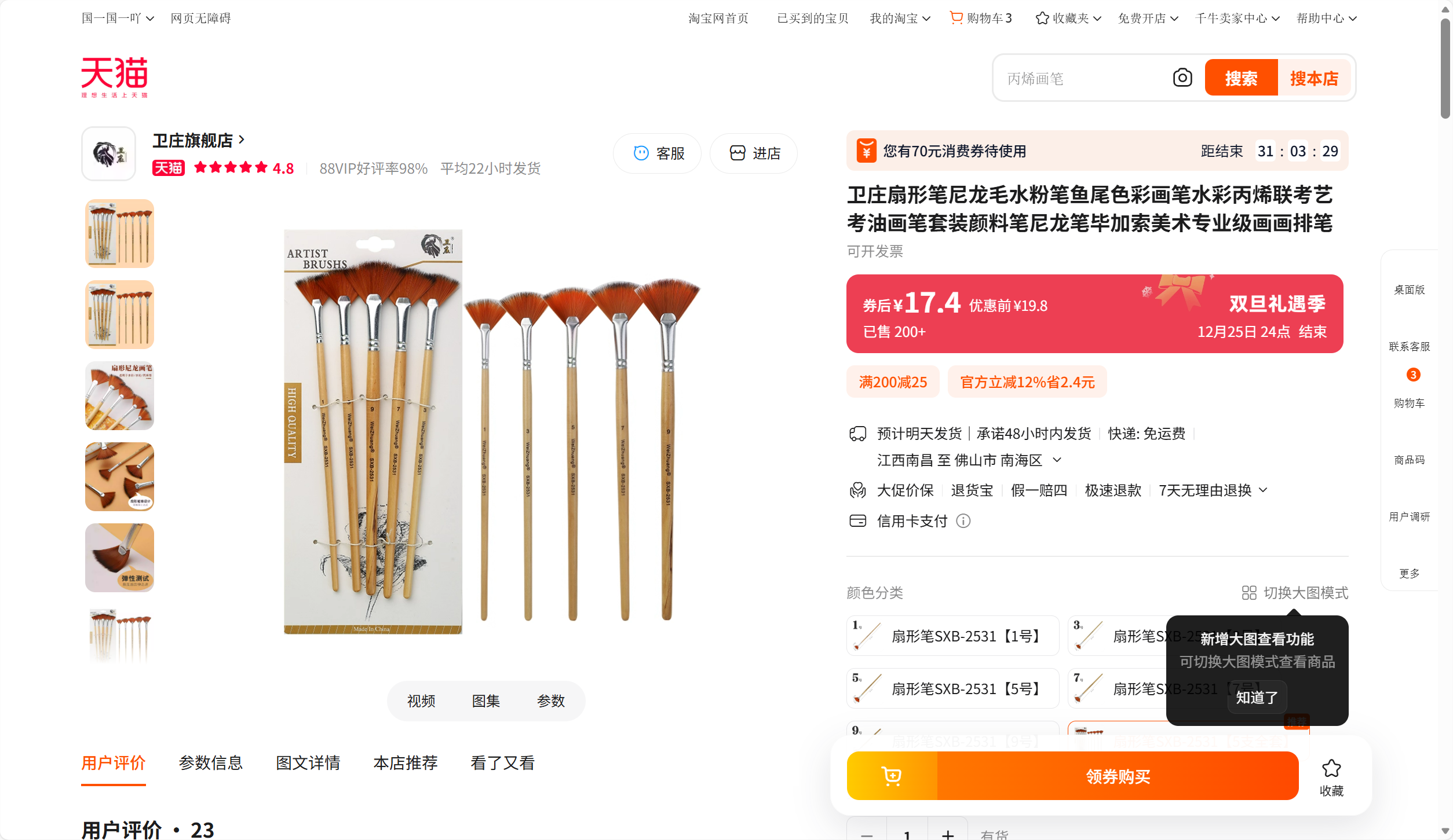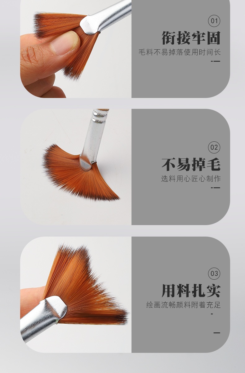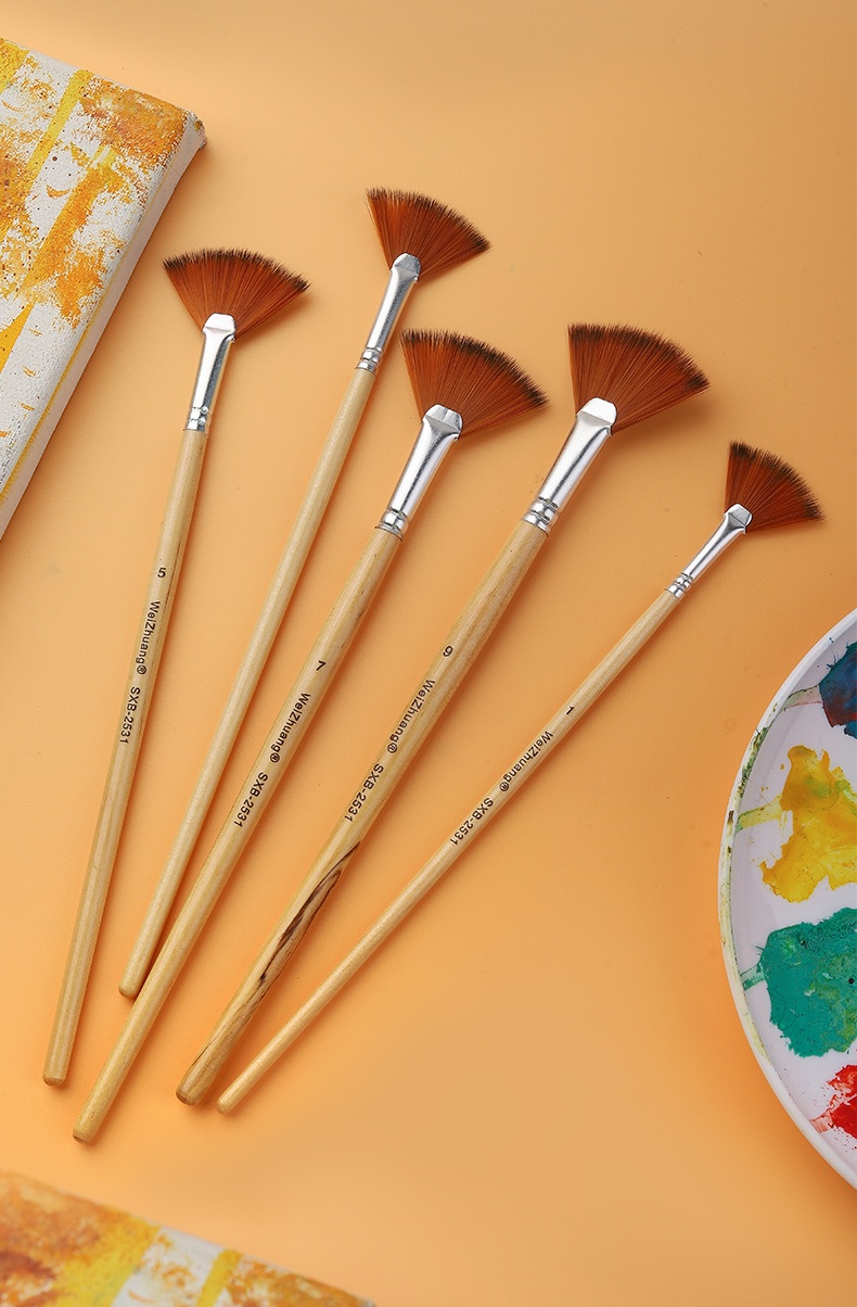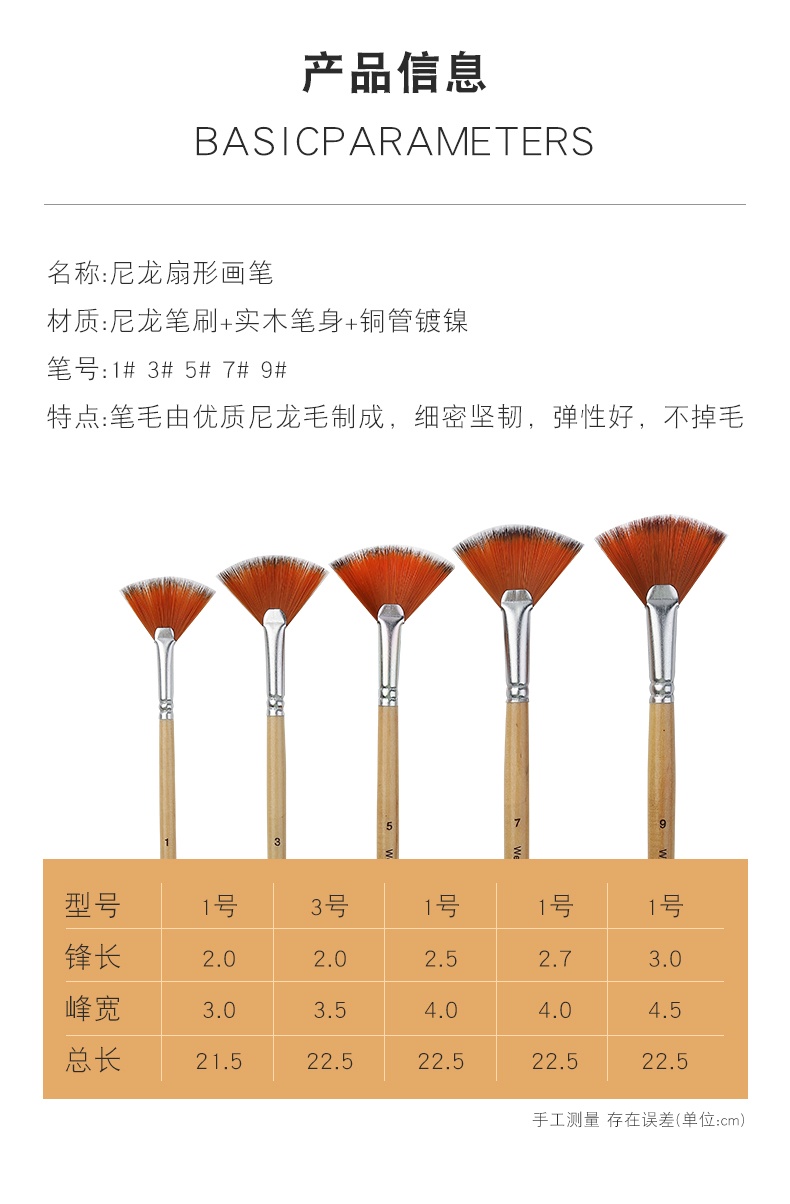 卫庄扇形笔 尼龙毛水粉笔 水彩丙烯联考艺考油画笔套装