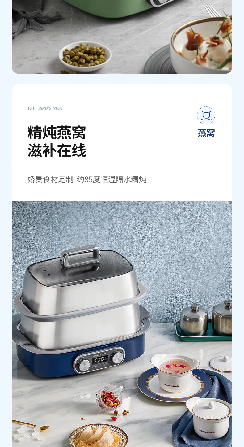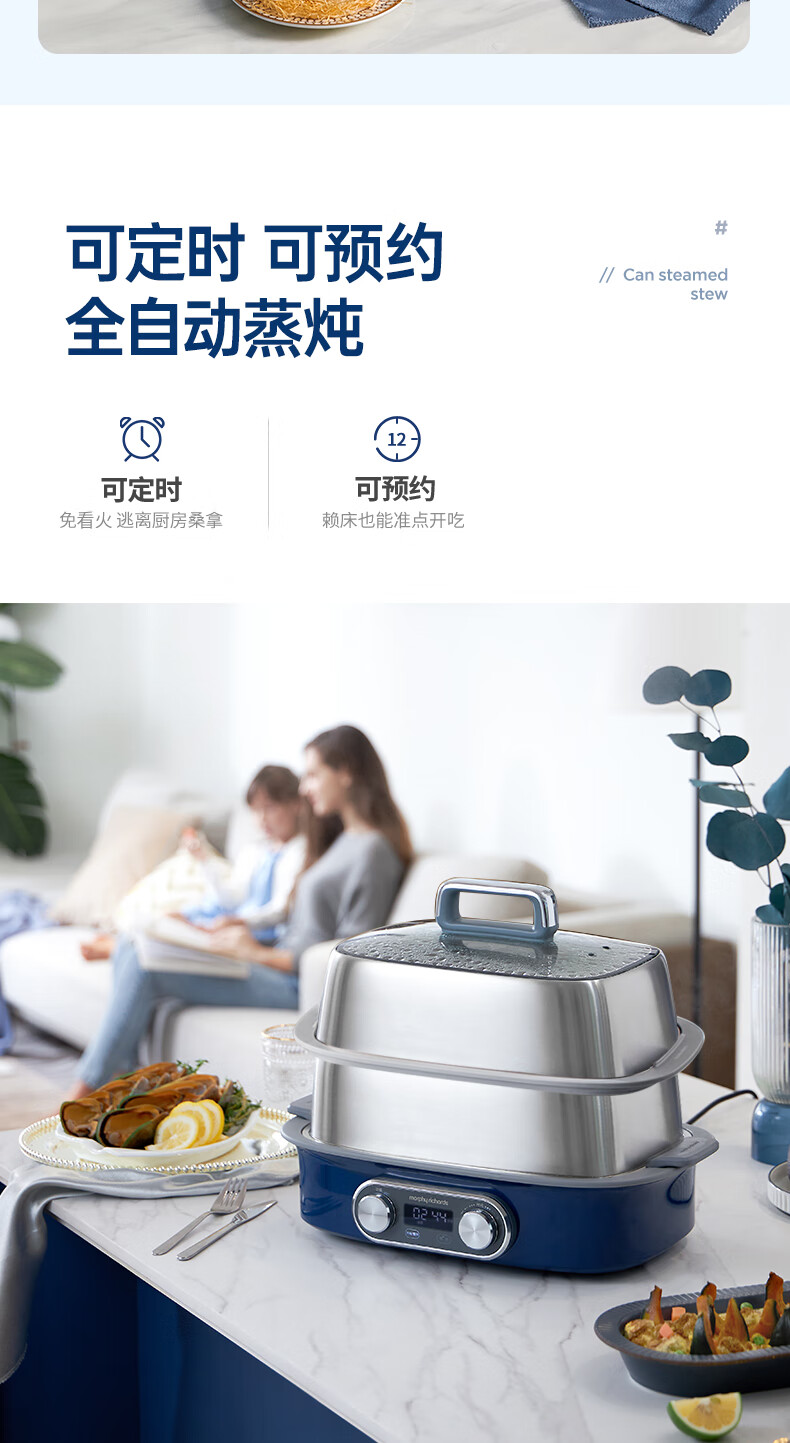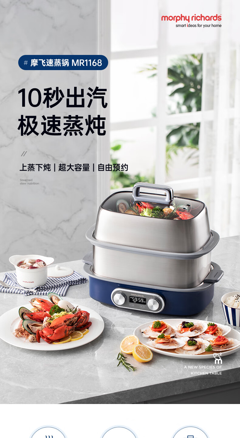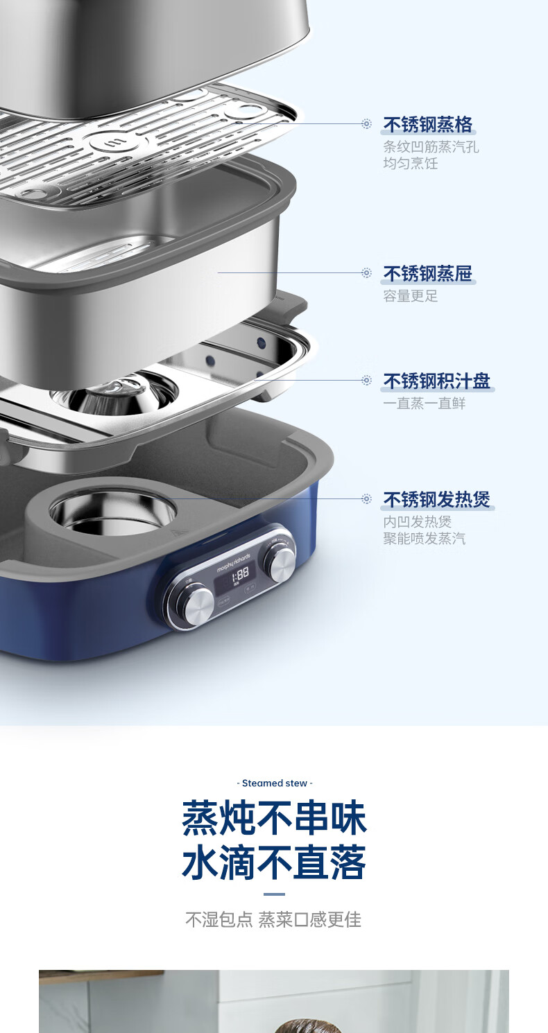 摩飞电器(Morphyrichards)多功能锅 家用蒸炖锅极速电蒸锅电炖锅蒸煮锅 12升容量双层上蒸下炖MR1168轻奢蓝