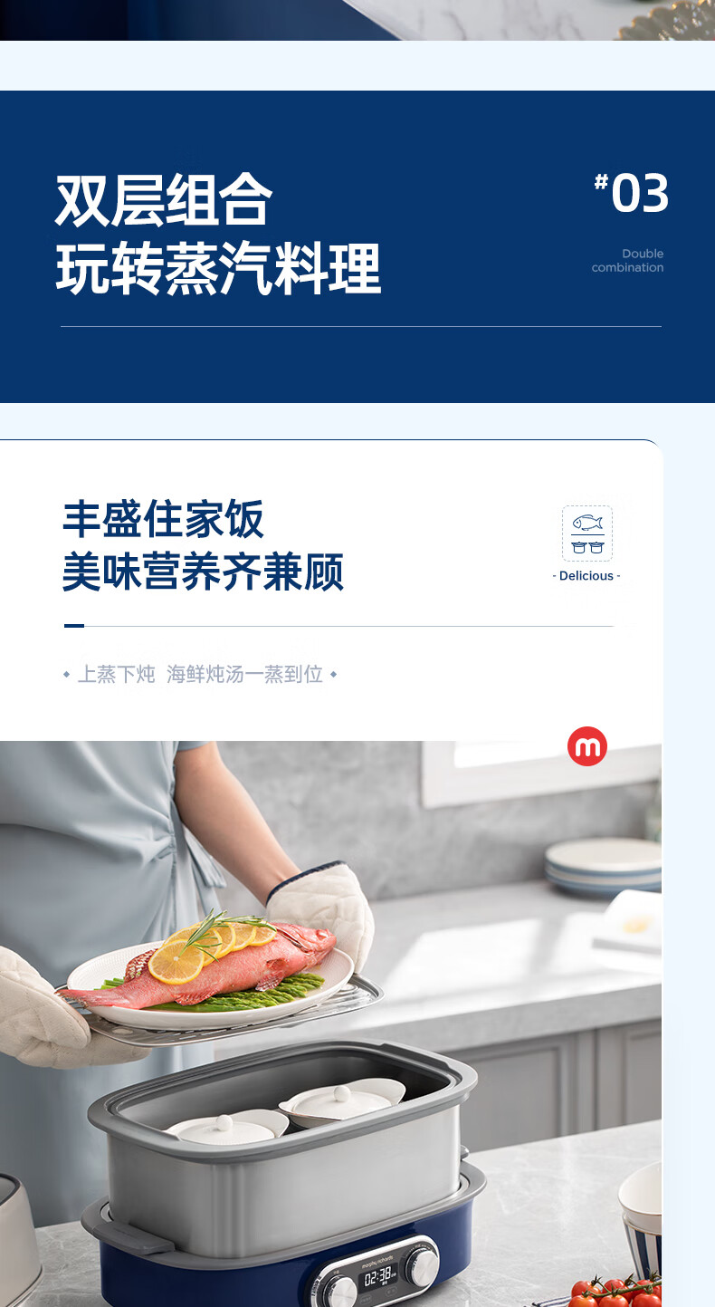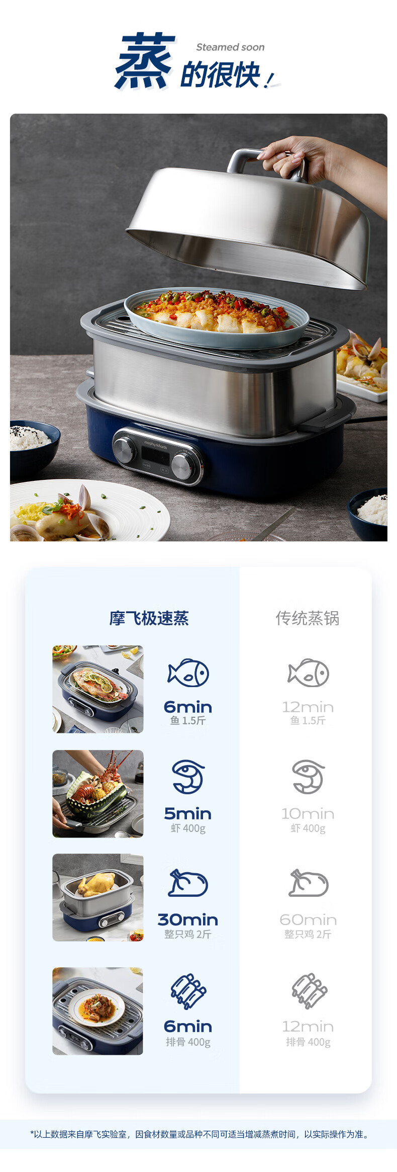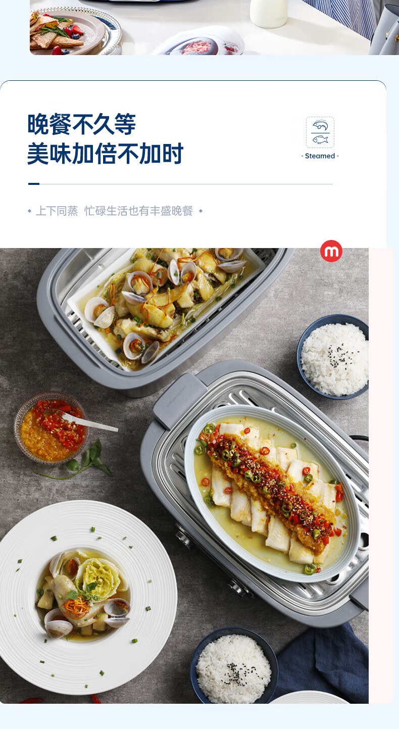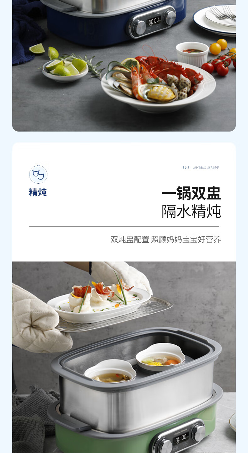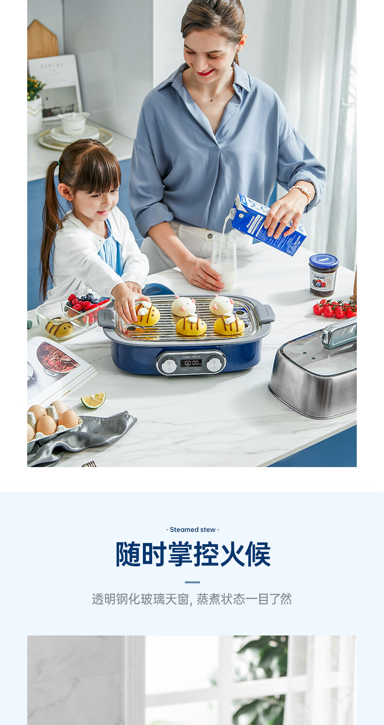 摩飞电器(Morphyrichards)多功能锅 家用蒸炖锅极速电蒸锅电炖锅蒸煮锅 12升容量双层上蒸下炖MR1168轻奢蓝