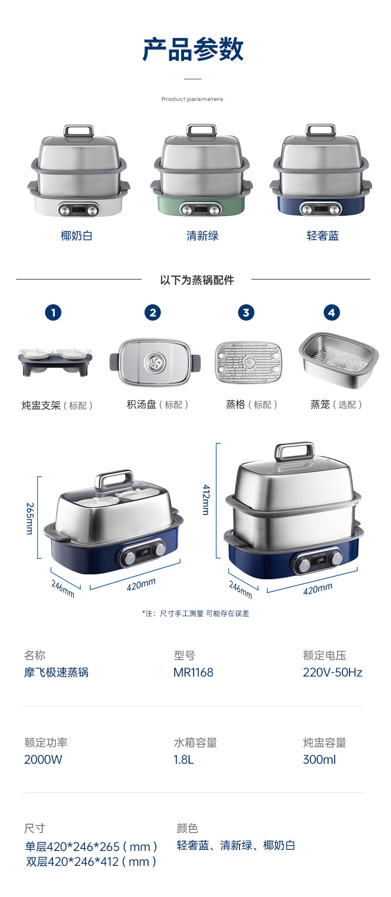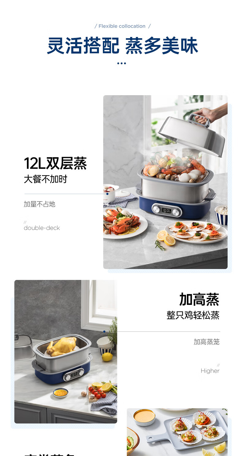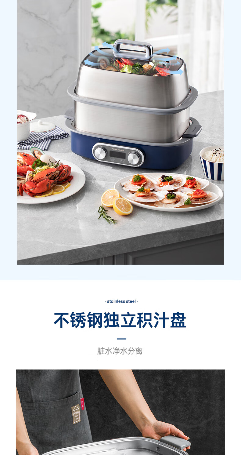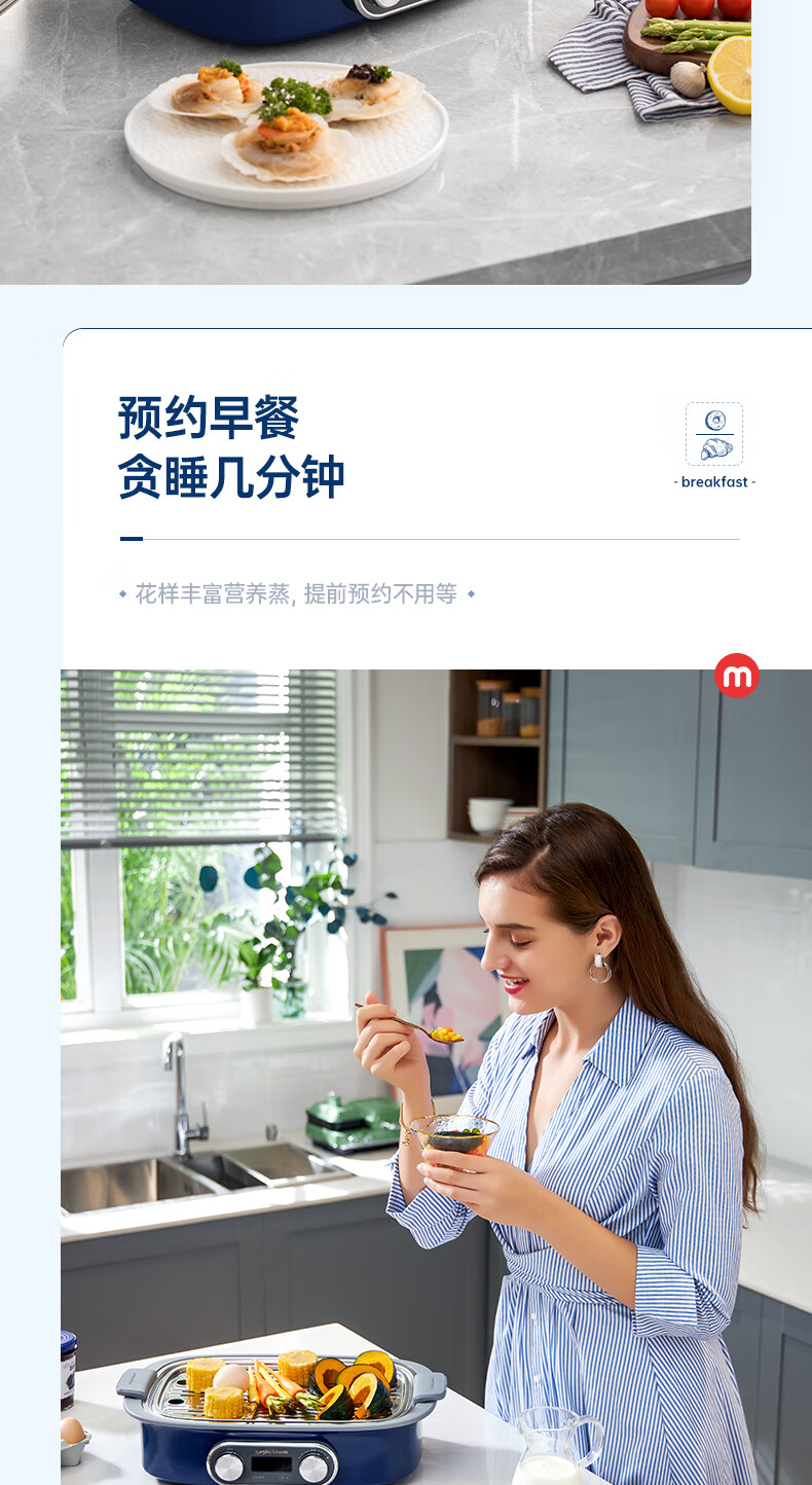 摩飞电器(Morphyrichards)多功能锅 家用蒸炖锅极速电蒸锅电炖锅蒸煮锅 12升容量双层上蒸下炖MR1168轻奢蓝