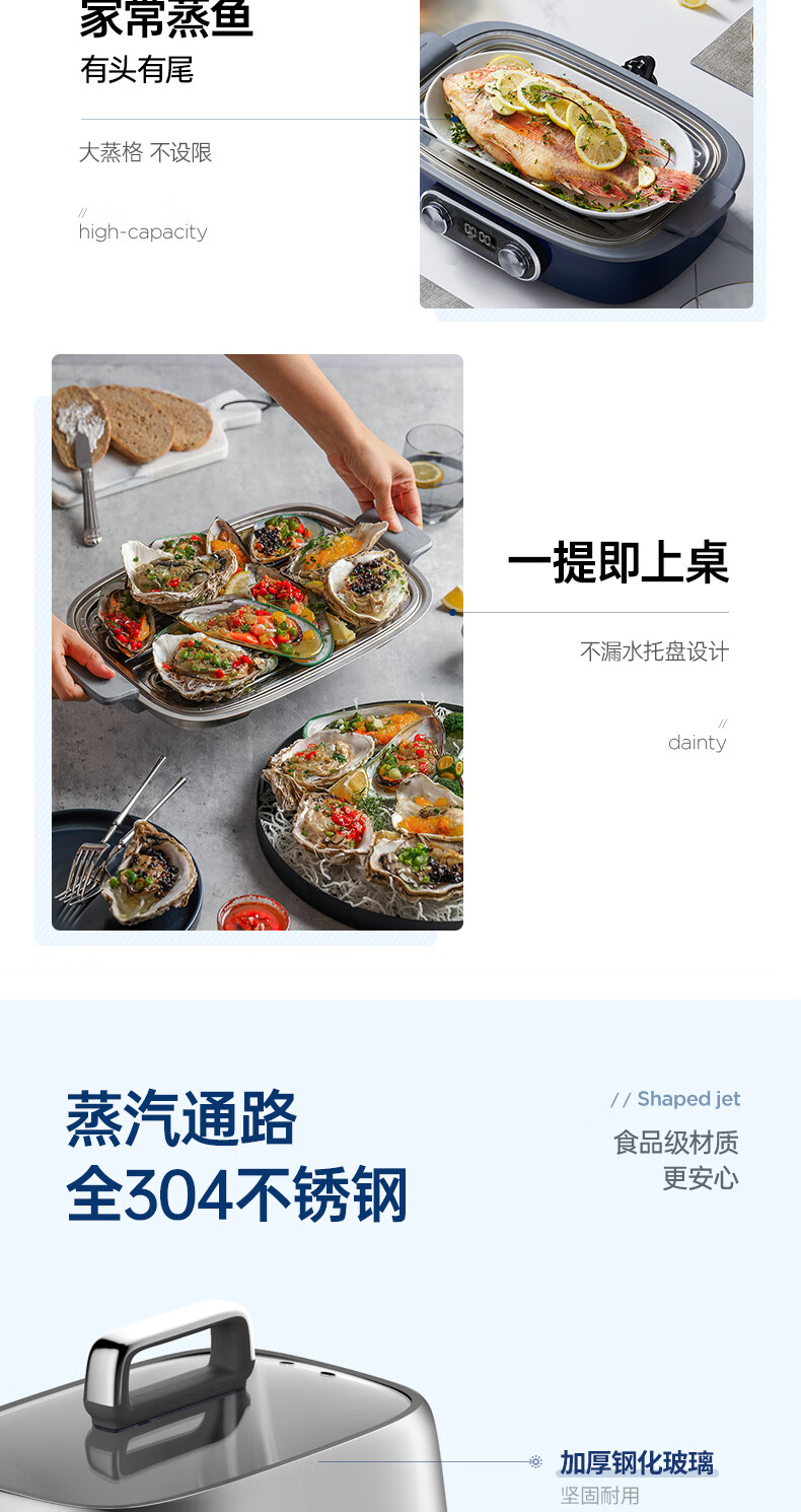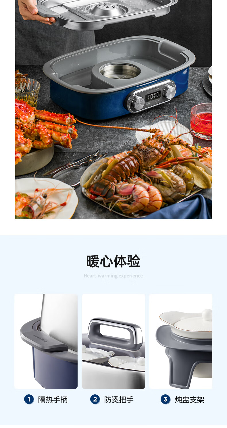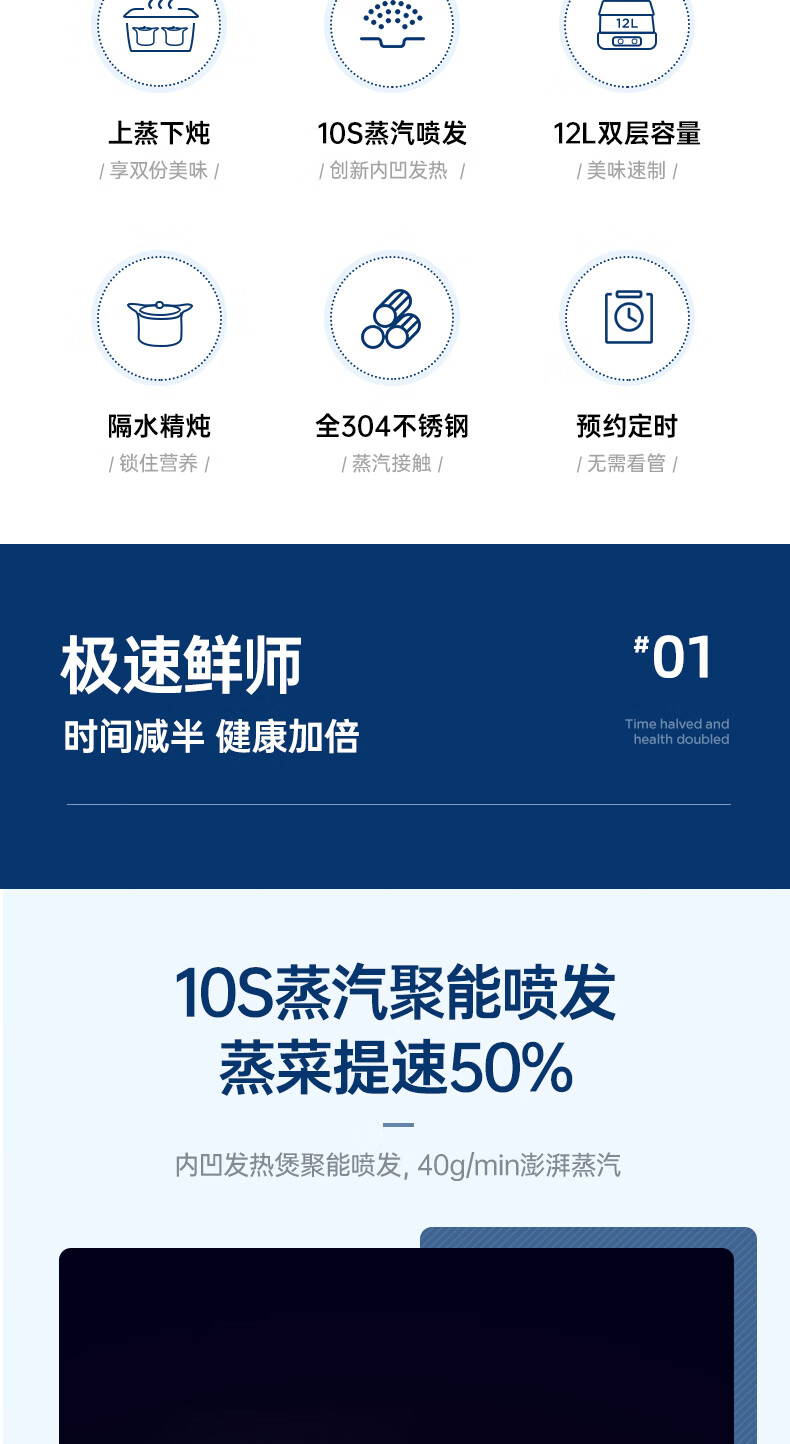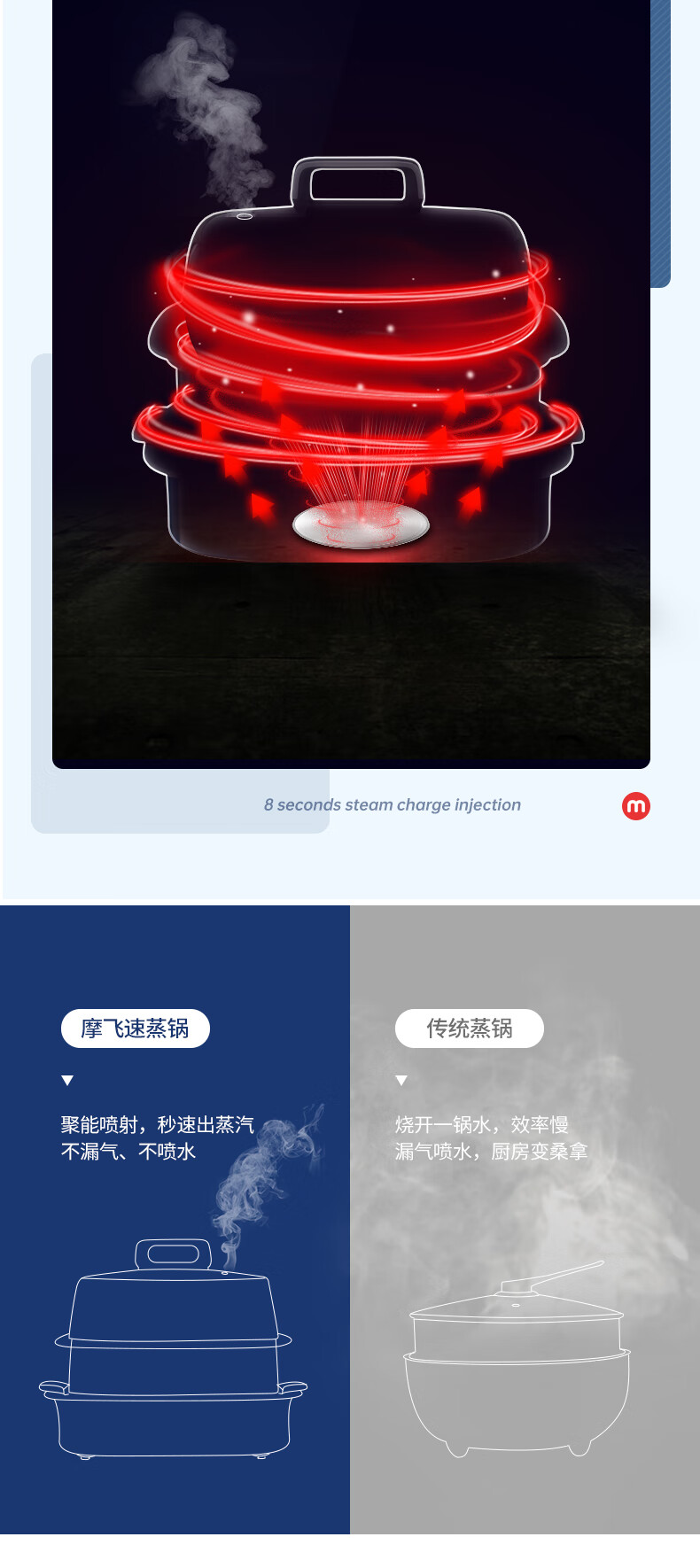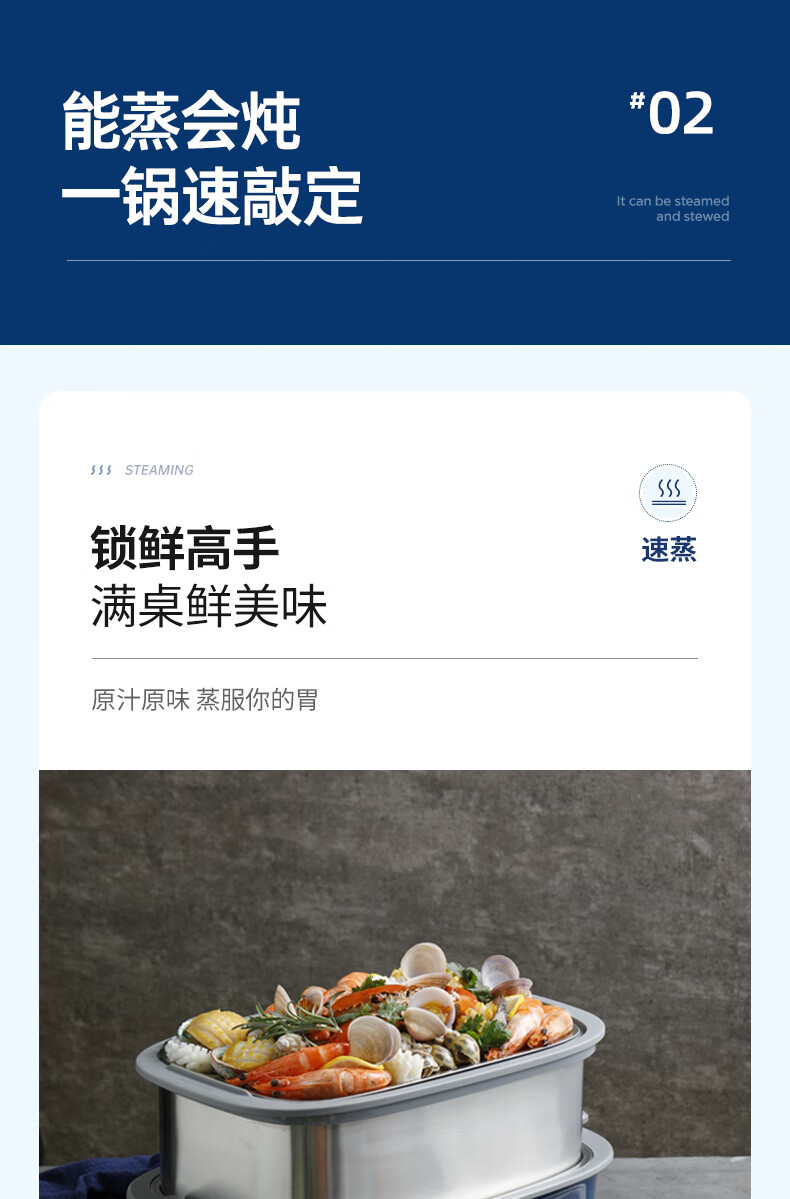 摩飞电器(Morphyrichards)多功能锅 家用蒸炖锅极速电蒸锅电炖锅蒸煮锅 12升容量双层上蒸下炖MR1168轻奢蓝