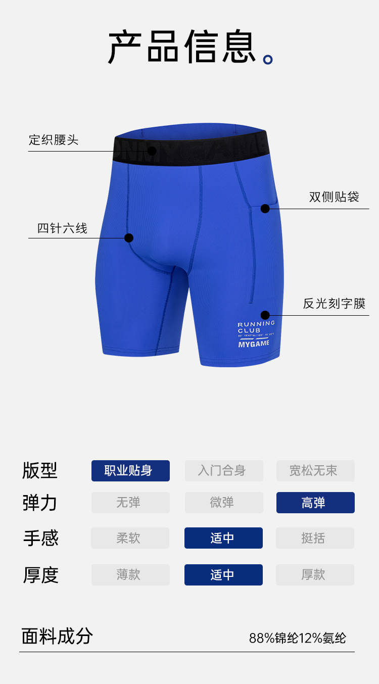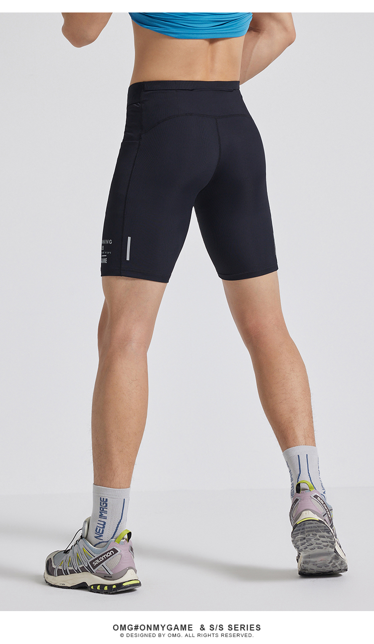 OMG运动 跑步裤子男五分紧身裤高弹力健身裤子压缩裤田径训练夏季J-FMJSK2671