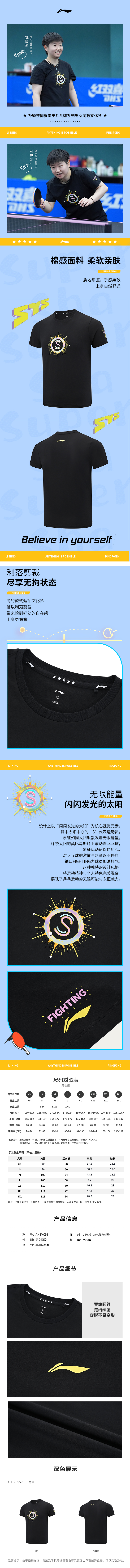 【2025新品】李宁乒乓球系列孙颖莎同款夏季短袖文化衫AHSVC95-1 商品图7