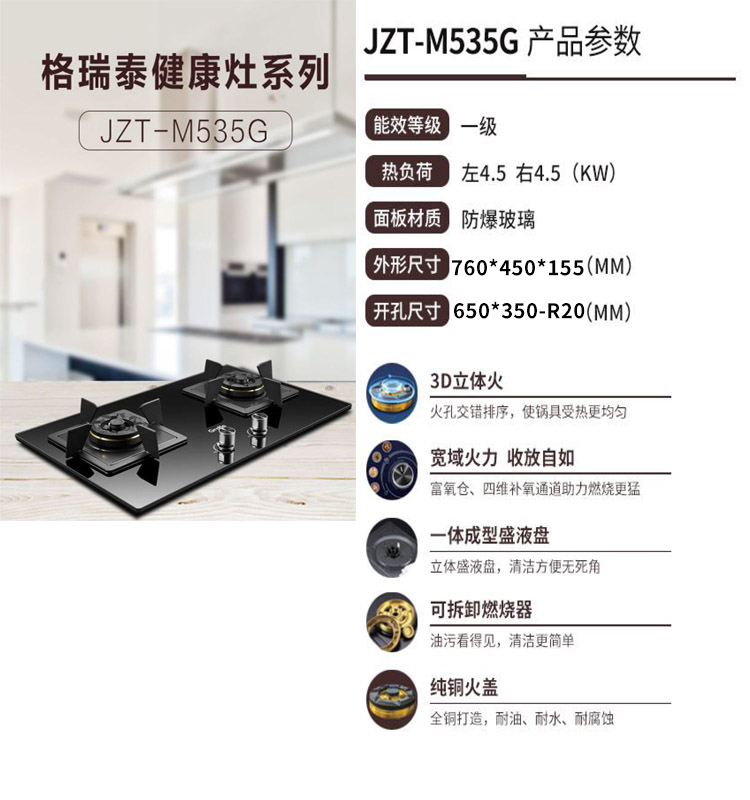 Gratle JZT-M535G/S格瑞泰JZT-M835G/S家用燃气灶 天燃气 灶具