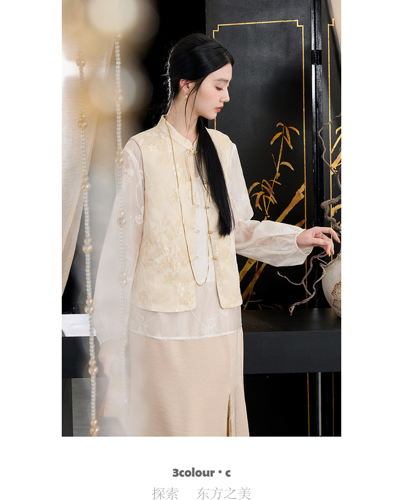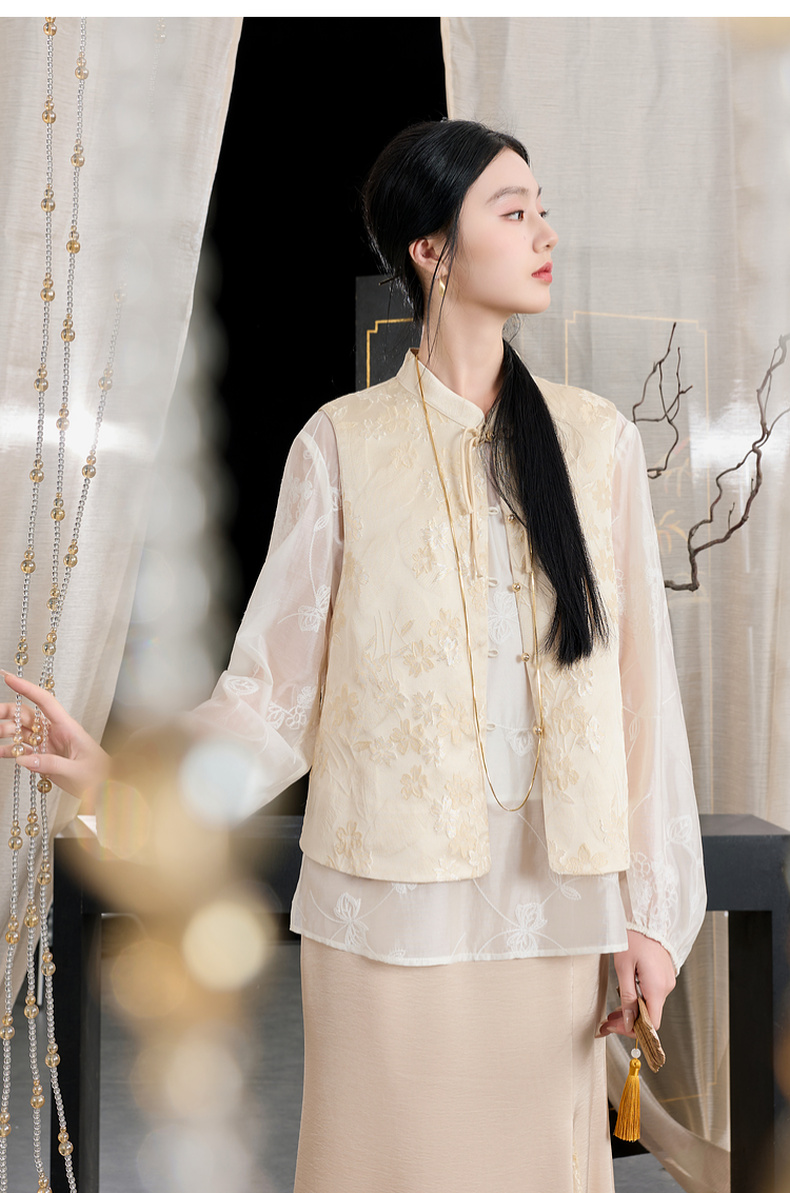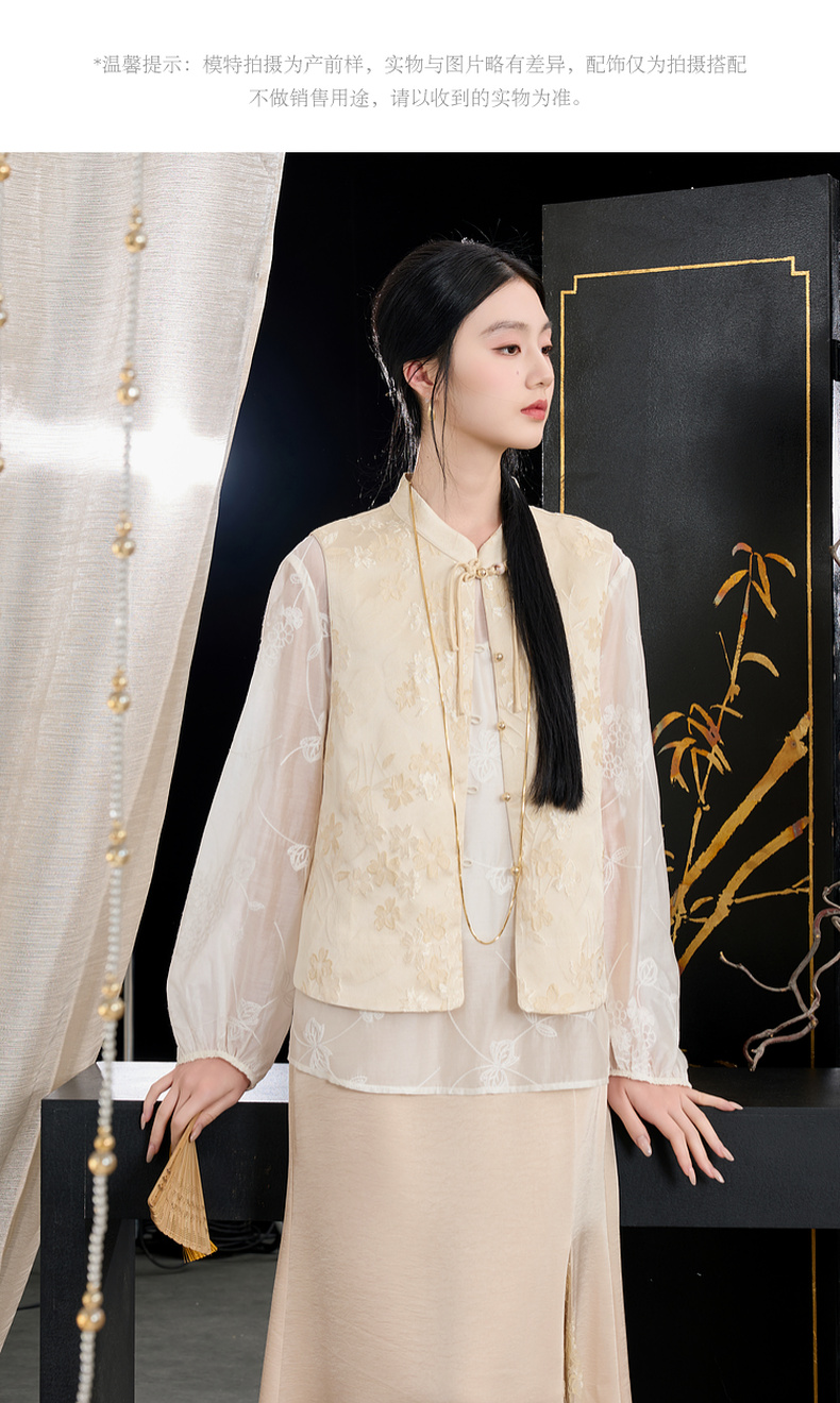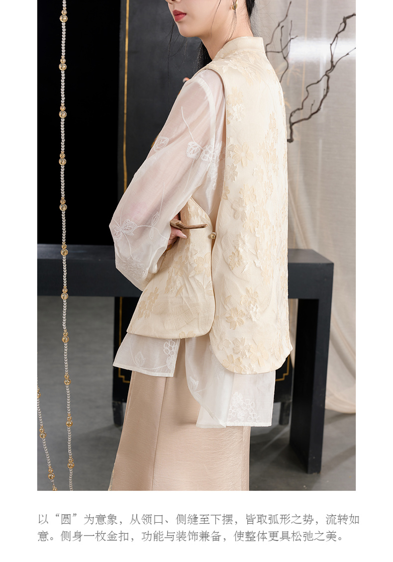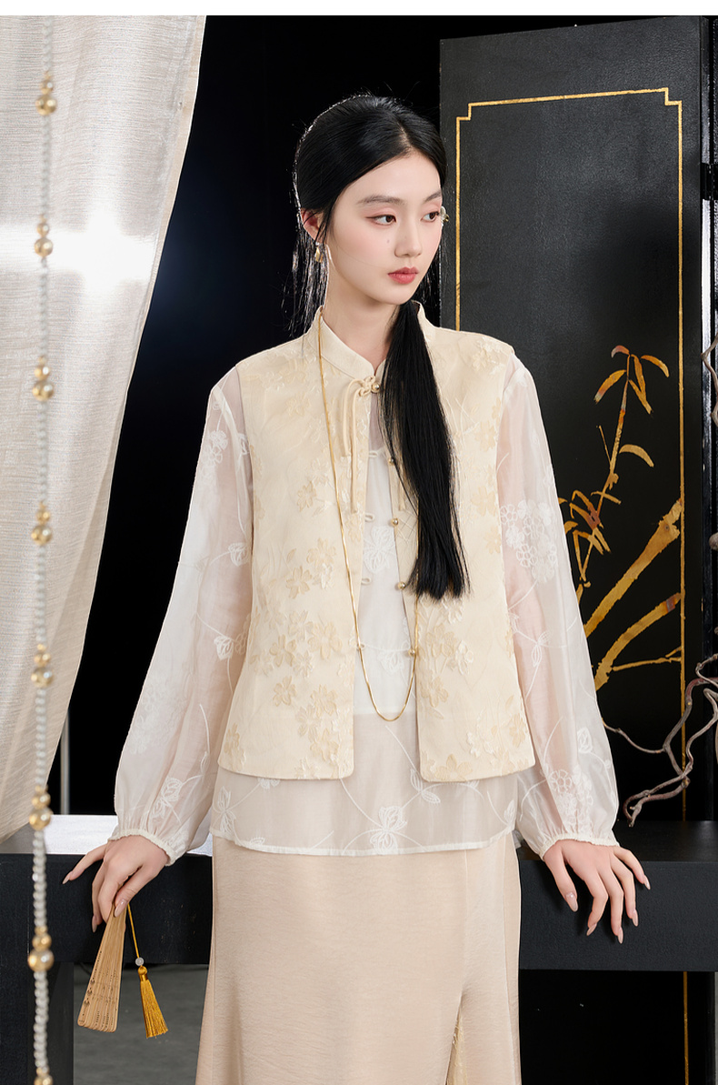 三彩【春花秋月】2025秋季新款提花马甲盘扣开衫马夹中式C