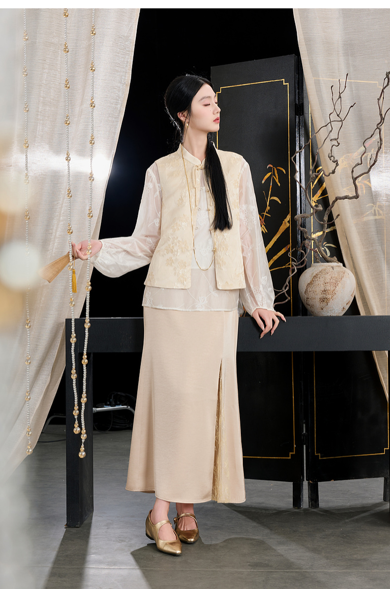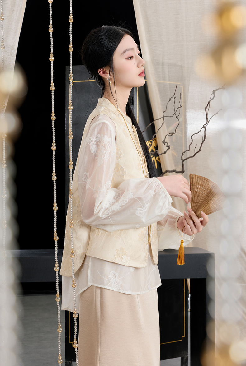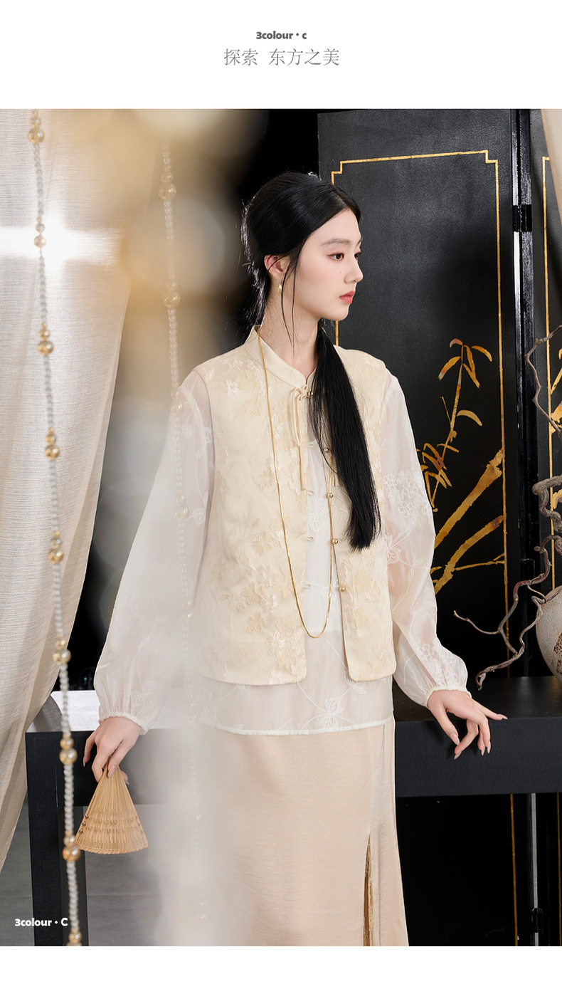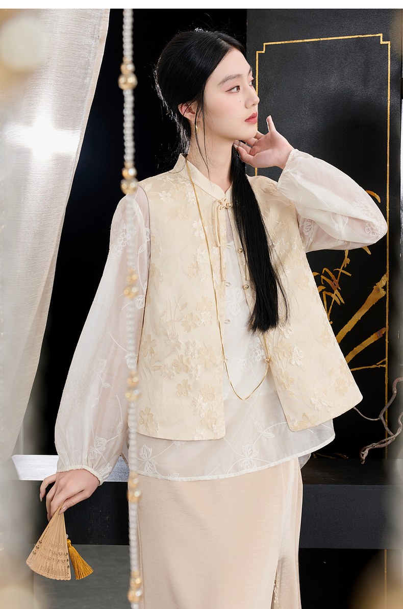 三彩【春花秋月】2025秋季新款提花马甲盘扣开衫马夹中式C