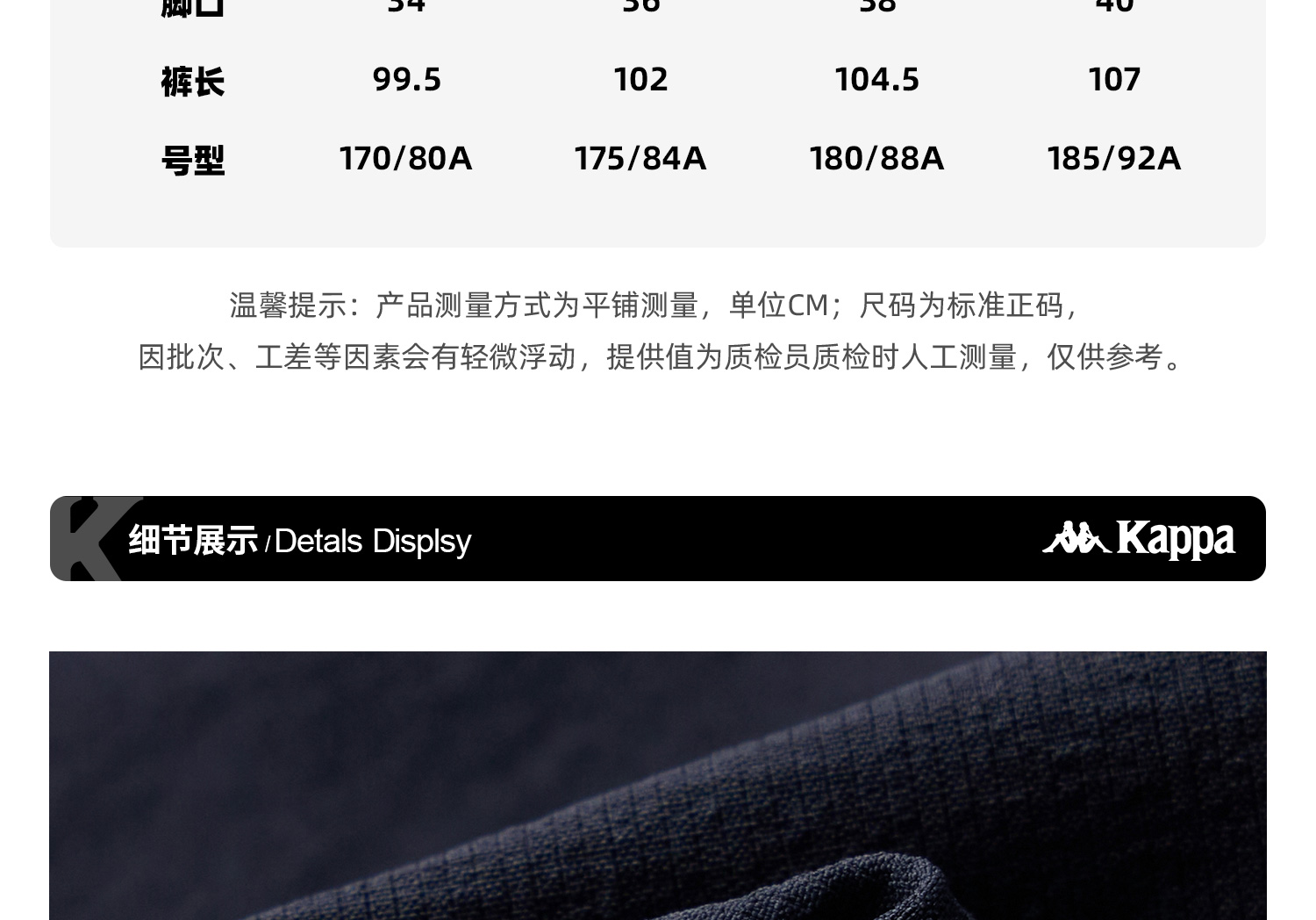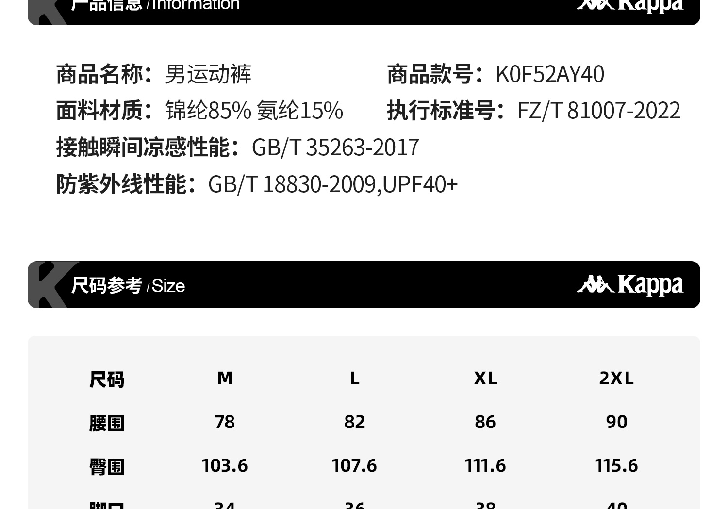 Kappa卡帕背靠背运动裤男夏季新款休闲直筒弹力裤子凉感防晒长裤K0F52AY40
