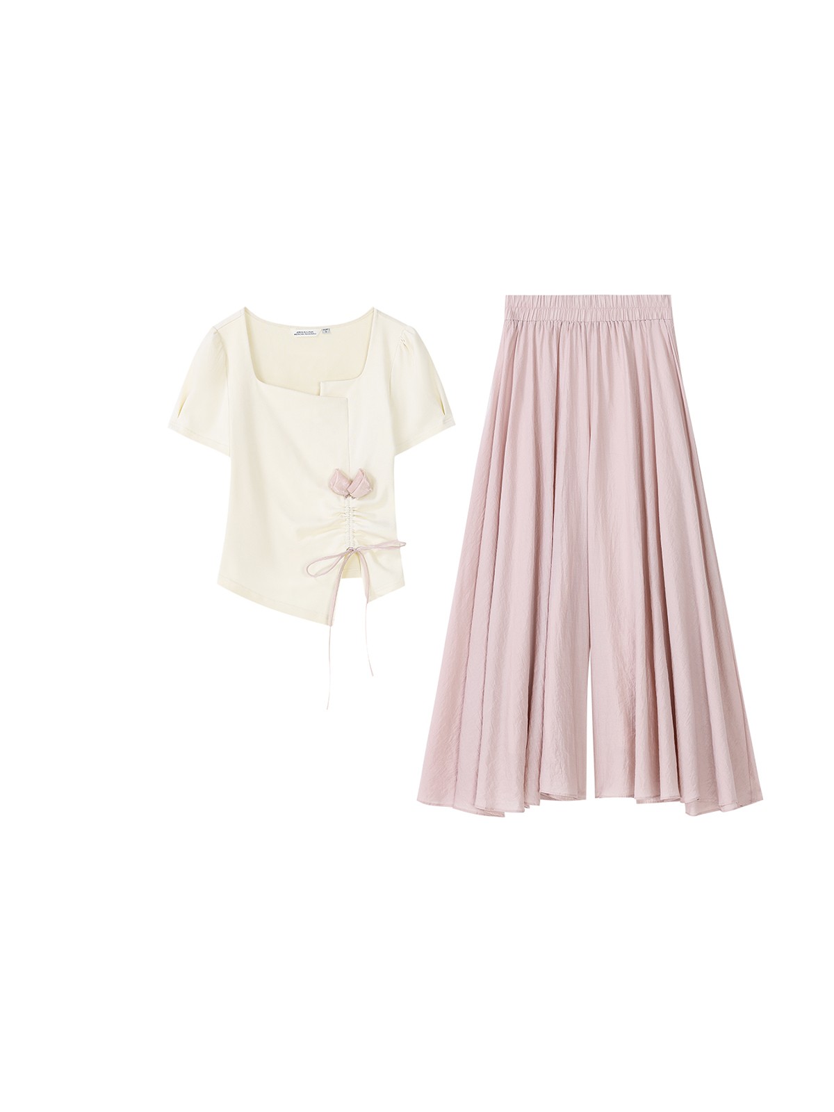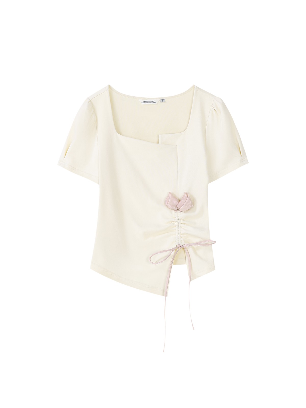 鹿向南「花蝶」气质设计感T恤休闲通勤上衣DC013
