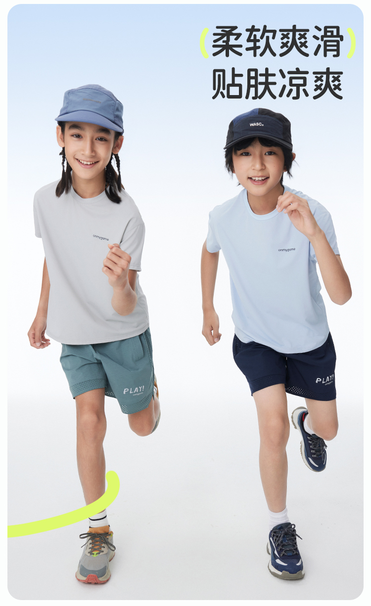 onmygame男童凉感短袖T恤儿童运动衣夏季体能训练运动衣上衣