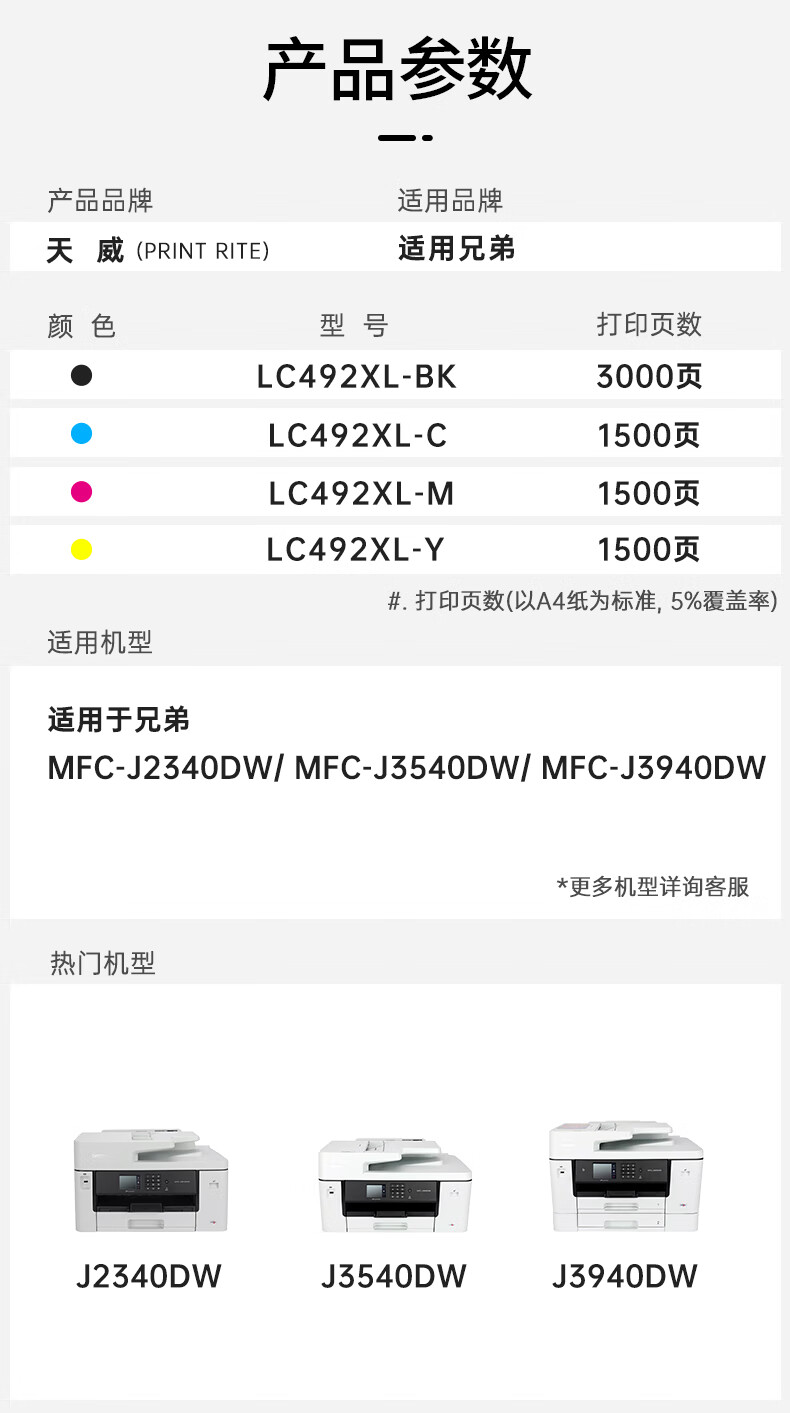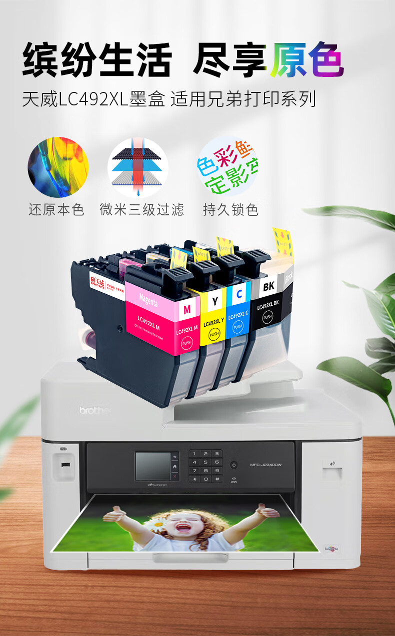 天威适用Brother兄弟LC492XL墨盒MFC-J2340DW打印机J3540DW J3940DW墨水盒MFC-J3940DW彩色喷墨一体机LC492