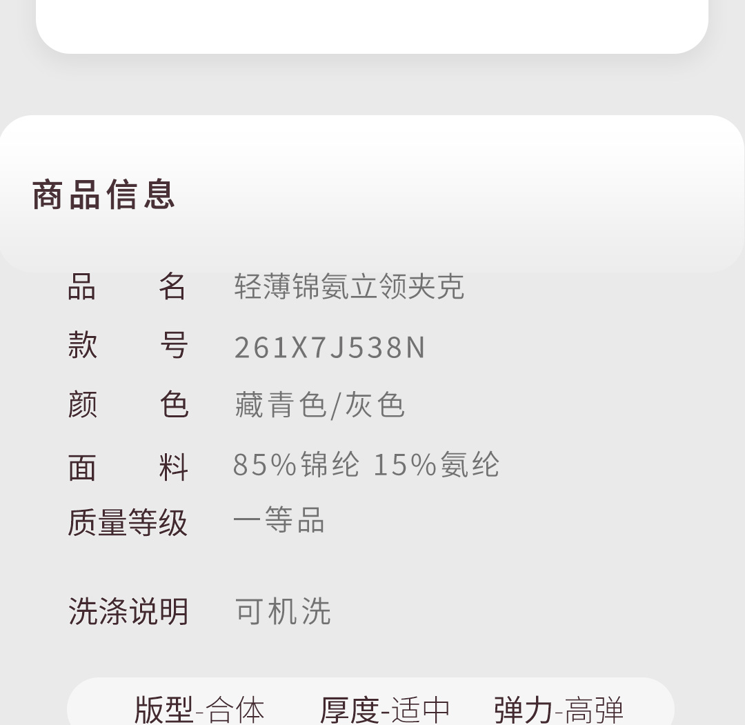 轻薄锦氨立领夹克261X7J538N[门店专款]